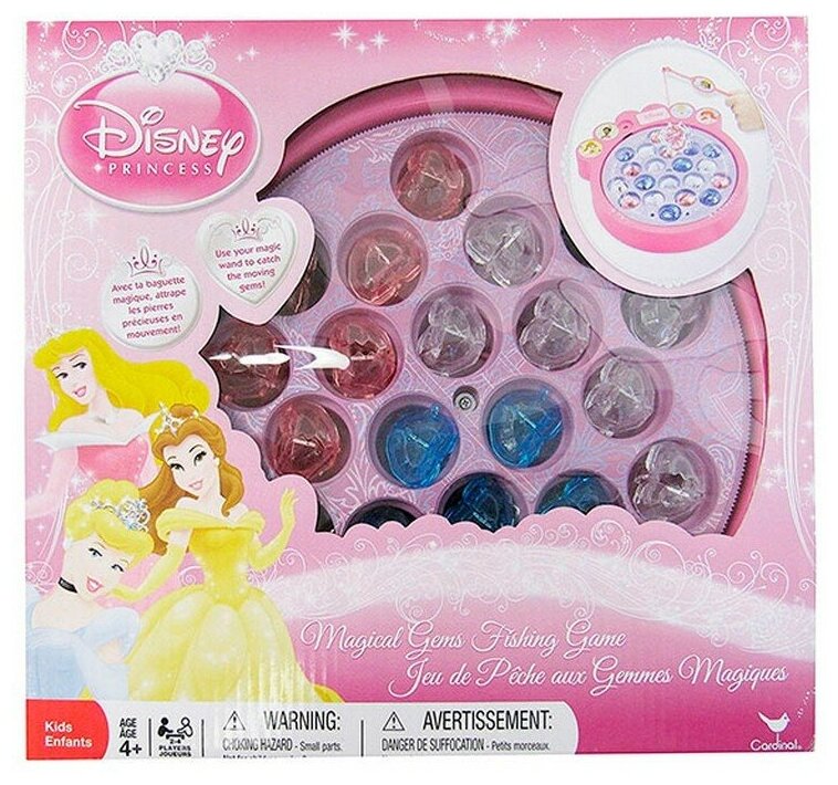 В розовой подставке с изображением принцесс Дисней есть множество отверстий. В отверстиях расположены искрящиеся красивые камушки. Задача игроков: с помощью специальной удочки, входящей в комплект, ловить «драгоценные камни». Кто сможет поймать больше, тот и победил.