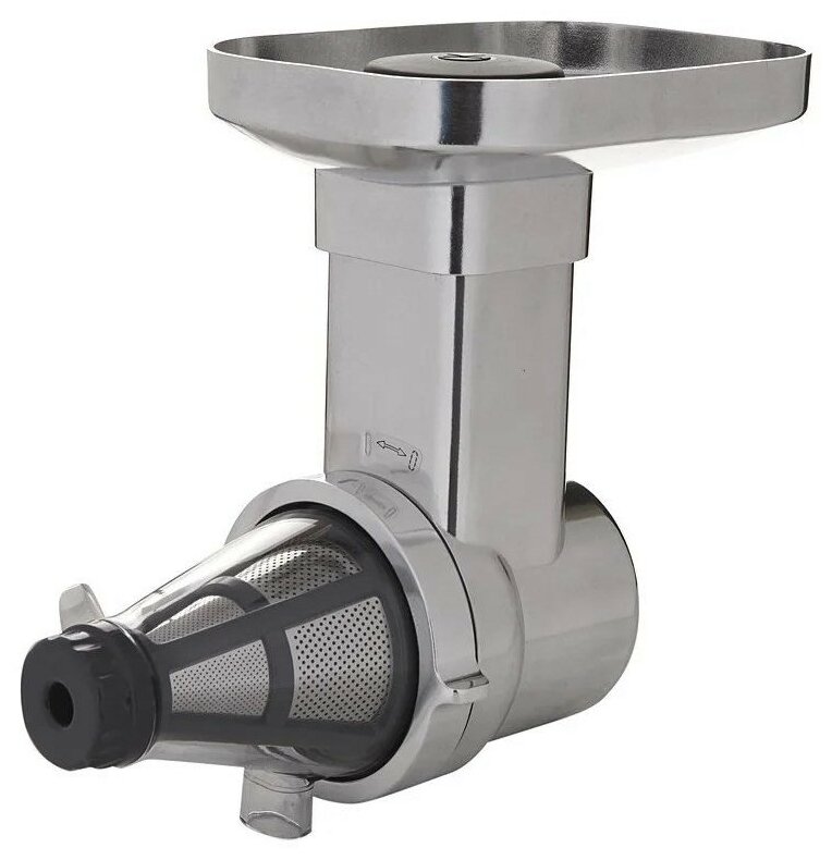 Аксессуар очень нужный, я всегда любила варенье из ягод и фруктов, пресс прекрасно подходит для их обработки. Заказывала деталь в этом магазине, мне мама посоветовала брать KAX 644, покупкой весьма довольна. К комбайну KENWOOD подсоединяется легко, насадка алюминиевая, не ржавеет со временем, темными пятнами от кислоты не покрывается. Сито внутри достаточно мелкое для перетирания продуктов в пюре, выходное отверстие маловато - приходится подождать, пока пройдет вся перемолотая масса. Прикручивается без труда, надежно держится, не вибрирует и не гудит во время работы. Мыть просто (даже в машинке), не пахнет ничем.