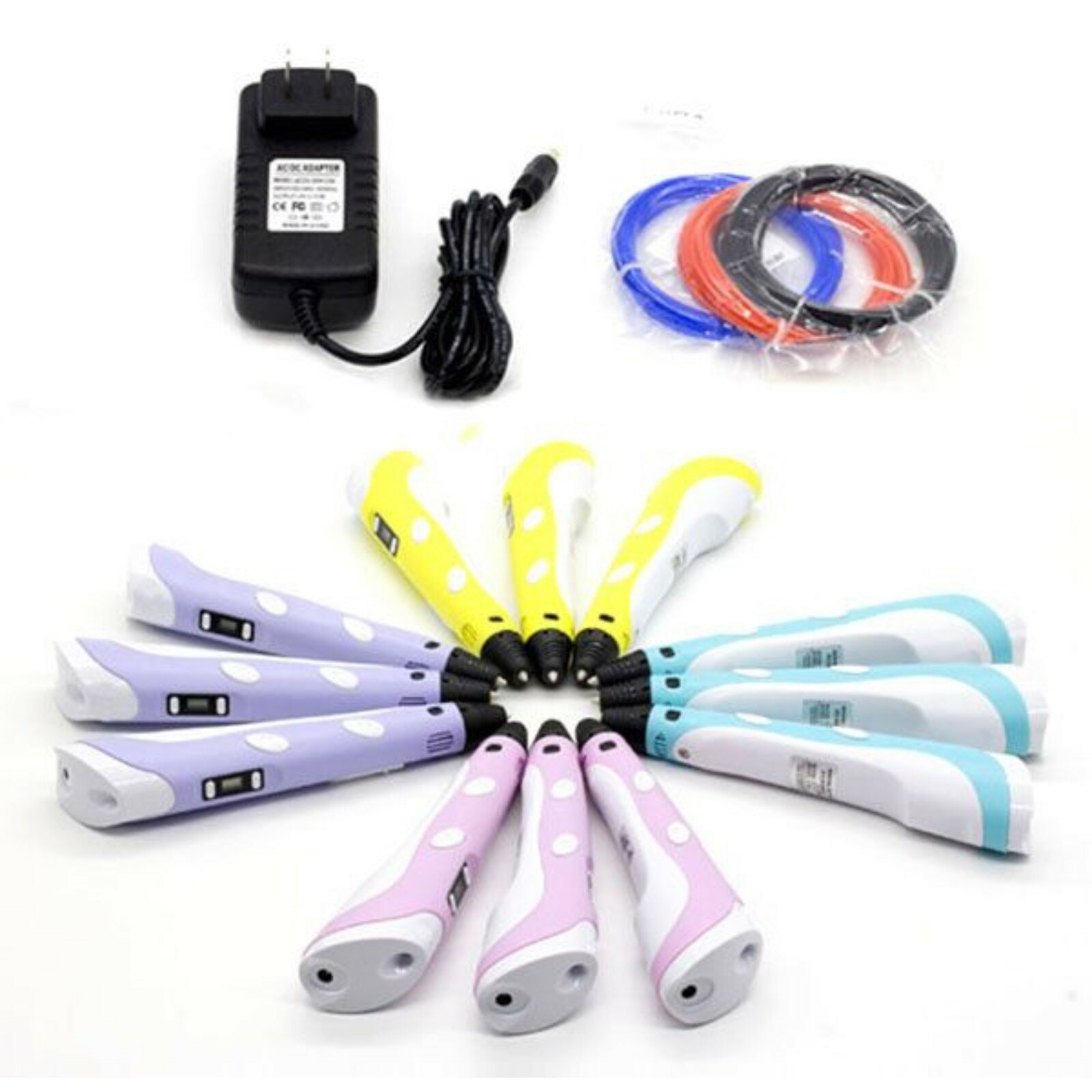 | Комплектация | 3D ручка, адаптер, подставка под ручку, руководство пользователя, цветной пластик |