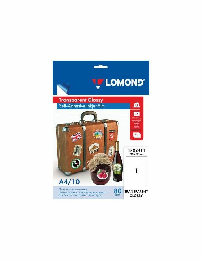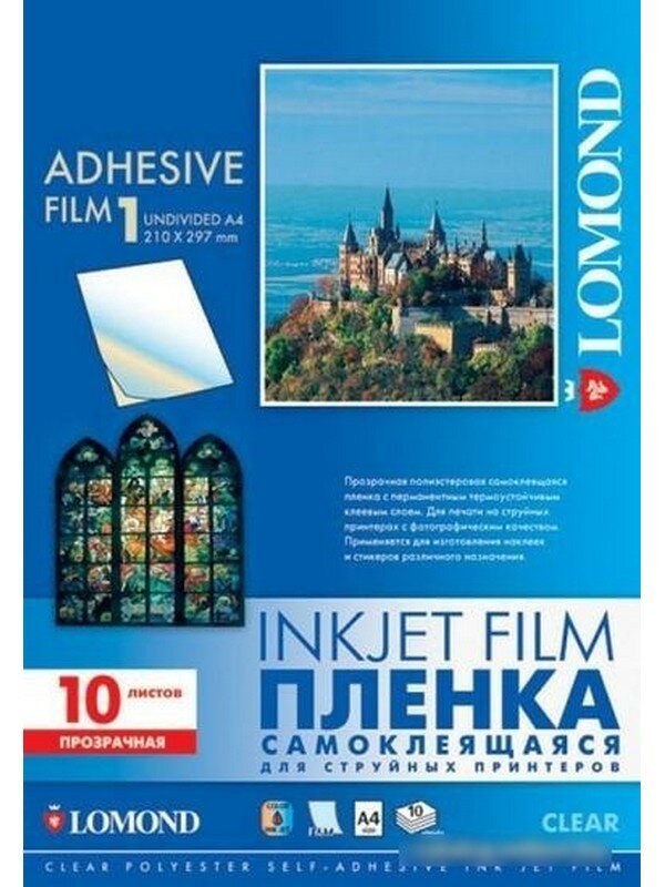 Прозрачная самоклеящаяся плёнка для струйной печати. Контрастное, четкое изображение. Быстро сохнет, прекрасно держит водорастворимые и пигментные чернила.