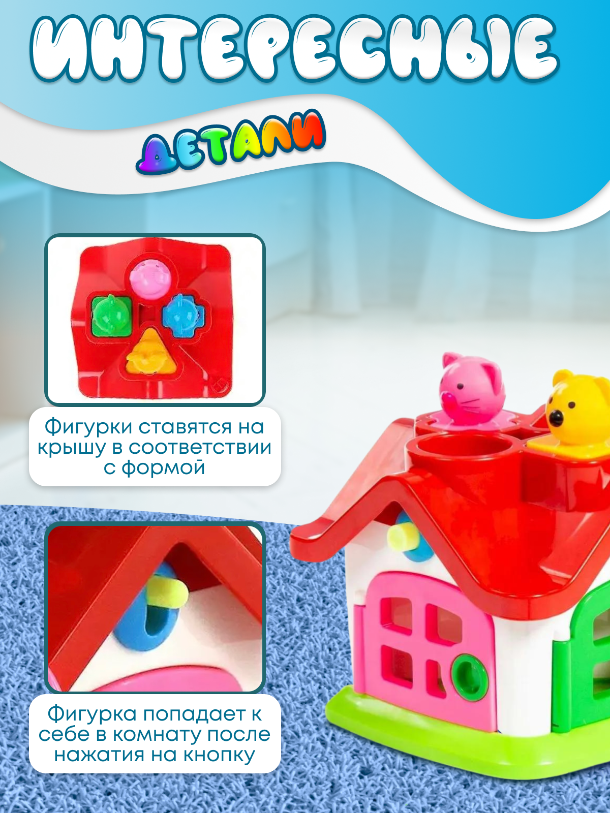 Отличное изобретение) заказала теремок ребенку "навырост", но ему он стал интересен практически сразу, и уже около месяца у него этот домик - фаворит среди всех игрушек. постоянно возится с ним)) единственный маленький минус - временами игрушки сами проваливаются в домик без нажатия на соответствующие кнопочки.