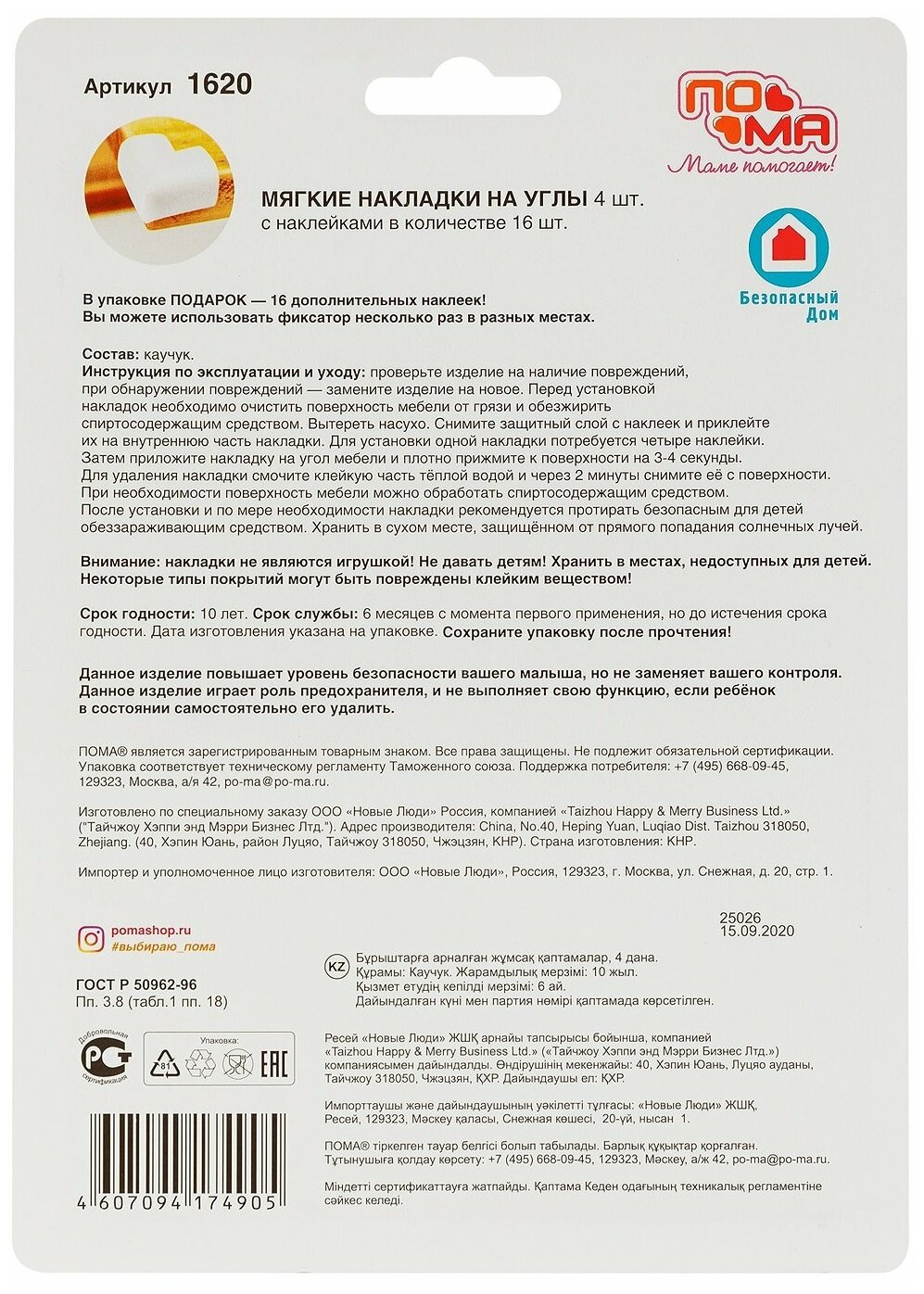 Сервис сравнения цен СкидкаГИД предлагает сравнить цены на товар «Накладки Пома на углы мягкие каучук (1620)»