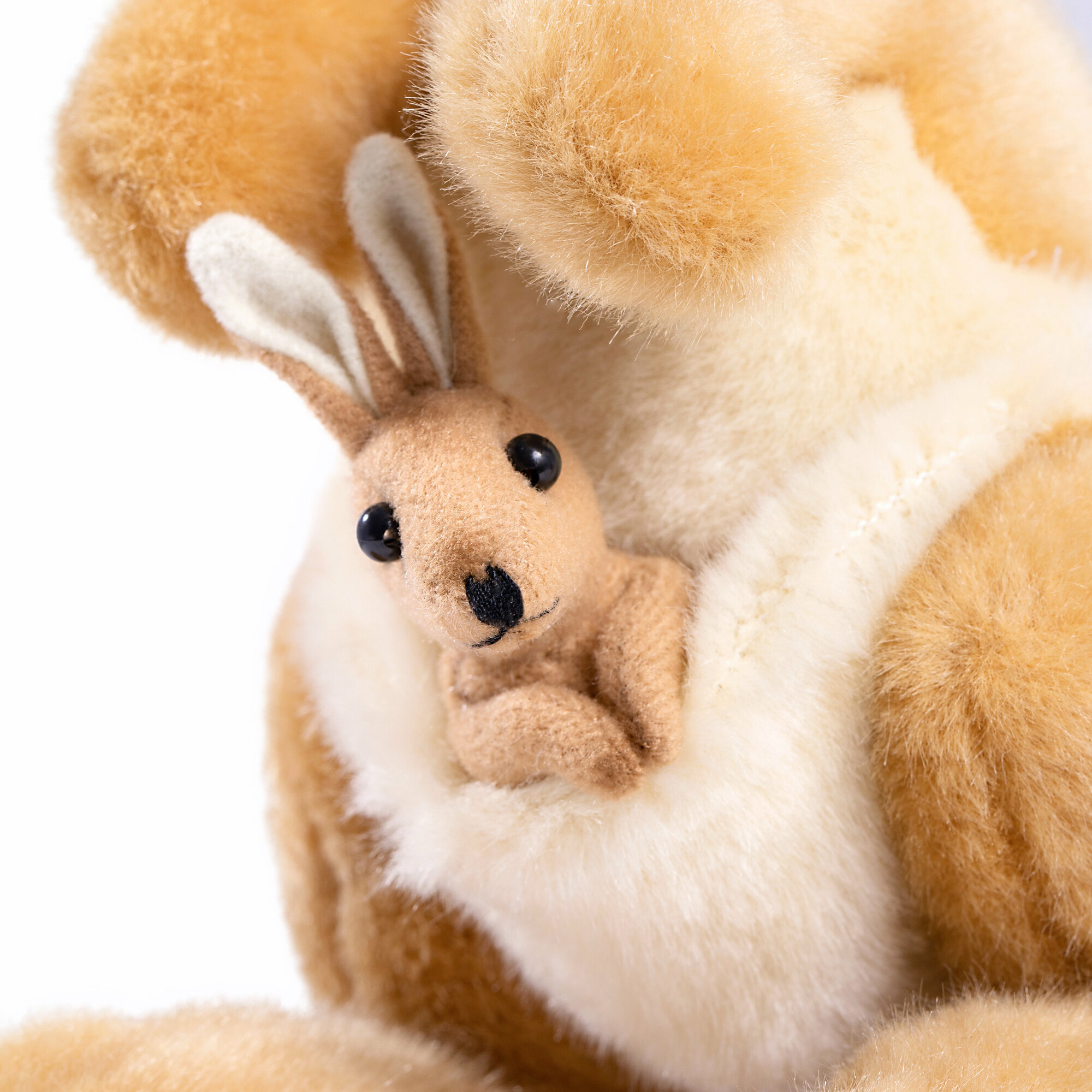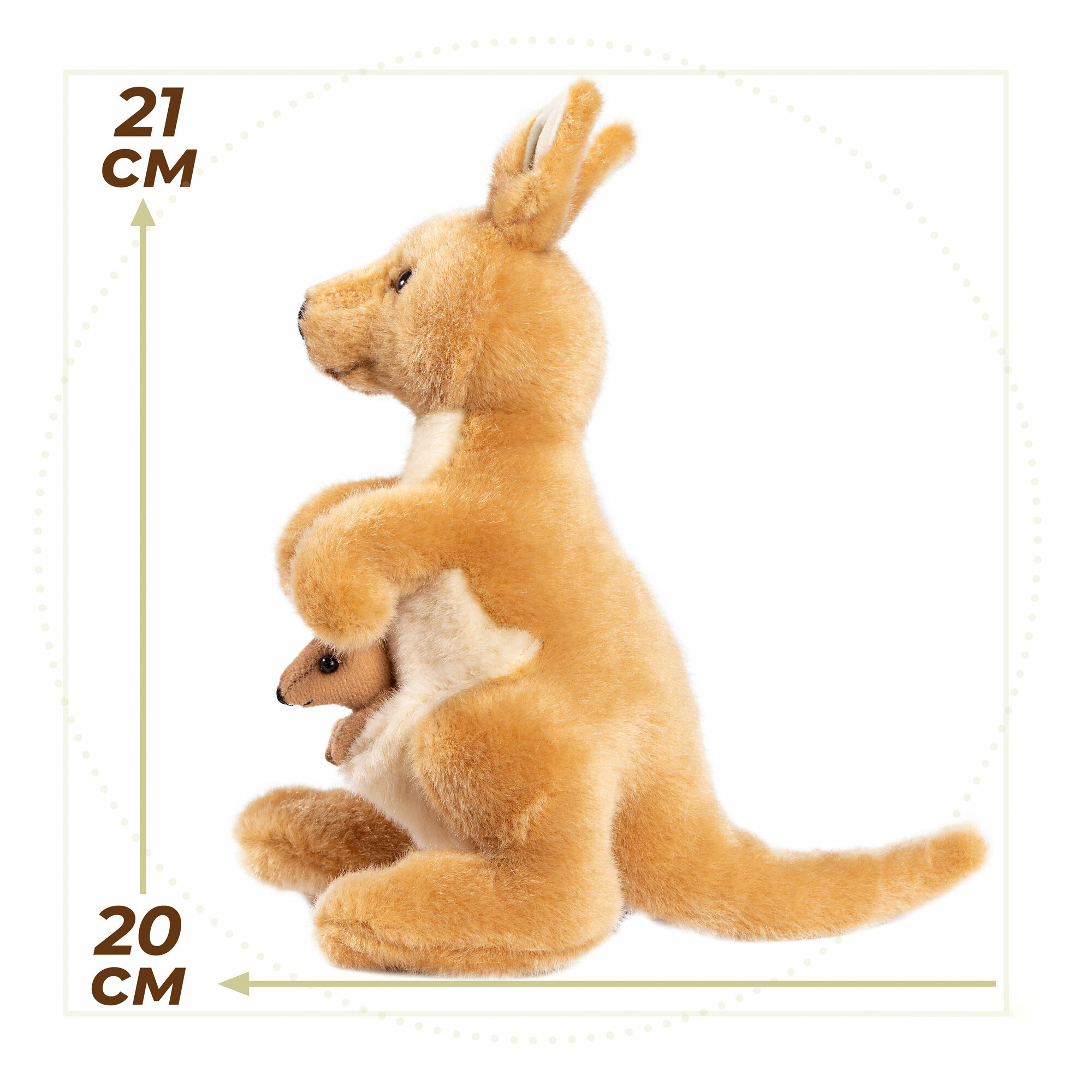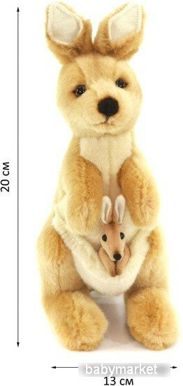 Кенгуру — группа сумчатых млекопитающих семейства кенгуровых. Представители этой группы распространены в Австралии, Новой Гвинее и близлежащих островах. Высота игрушки 20 см. Размеры в натуральную величину потрясают, а качество материала придает игрушкам натуральное сходство с настоящими животными. При помощи игрушек Hansa можно создавать различные интерьерные образы в детских, студиях и «живых уголках».