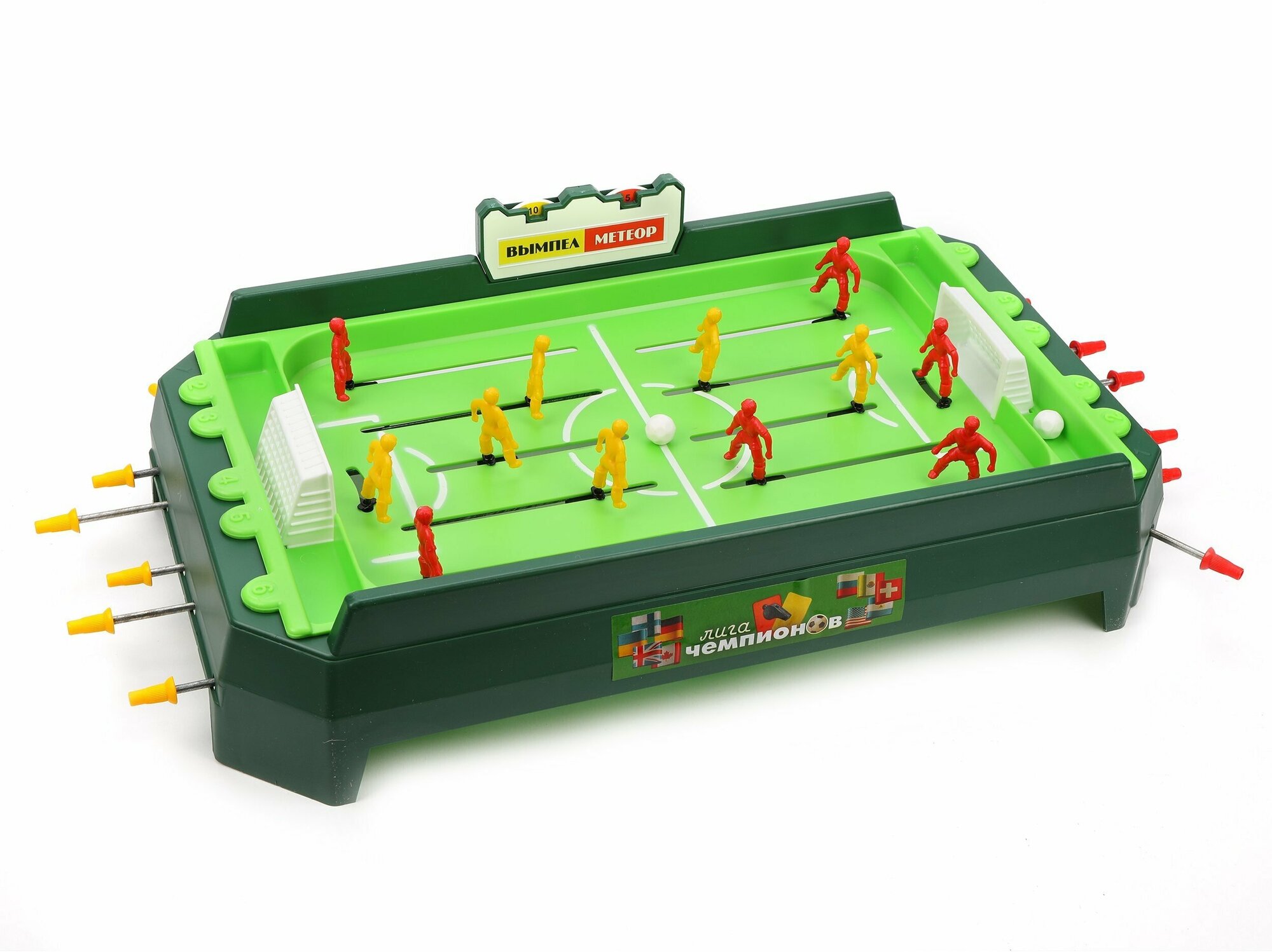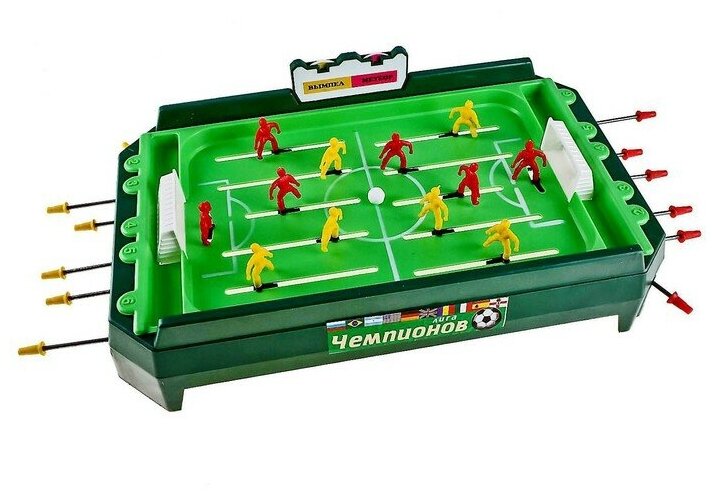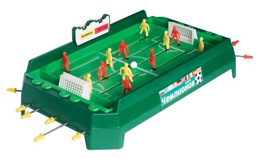 Настольная игра позволит детям весело провести свой досуг, сражаясь в дружеском футбольном матче. Корпус игрушки выполнен из прочного пластика и устойчиво стоит на поверхности, игровое поле имеет требуемую разметку и ворота команд. Фигурки игроков закреплены на функциональных направляющих, которыми ими можно управлять, забивая победные мячи в ворота противника.