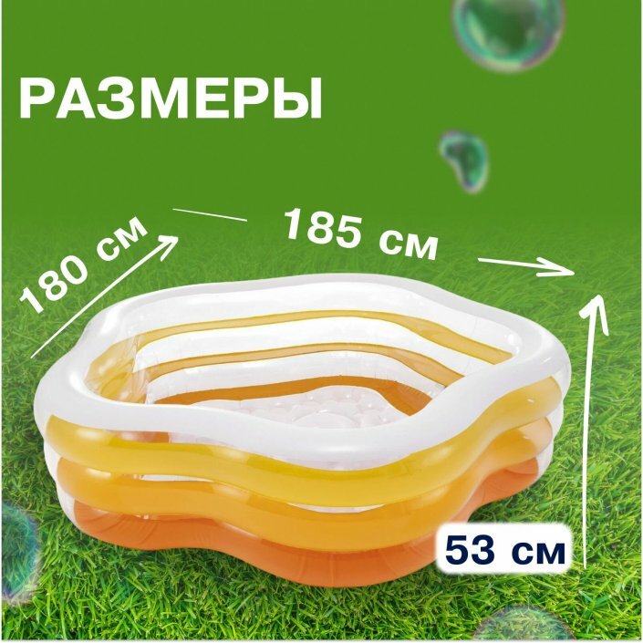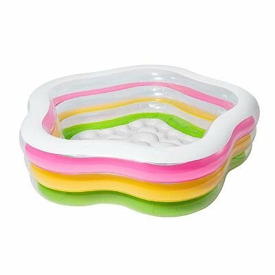 Бассейн Звезда с надувным дном радуга Intex Интекс отличается удобной формой, позволяющей находиться внутри сразу нескольким детям. Конструкция стенок из 4 камер обеспечивает дополнительную безопасность, а надувной пол – удобство и комфорт.