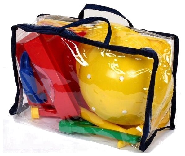 Совтехстром Набор Строитель №3 в сумке из пластиковых элементов включает в себя инструменты, похожие на настоящие, каску и удобный прозрачный чемоданчик. Особенности: Игра такого рода особенно полезна для мальчишек. Ведь это с раннего возраста морально готовит его ко взрослой жизни и приучает к трудолюбию. Ребенку будет полезно знать, как называется тот или иной инструмент, чтобы в дальнейшем было легче справляться с работой, где эти инструменты необходимы.