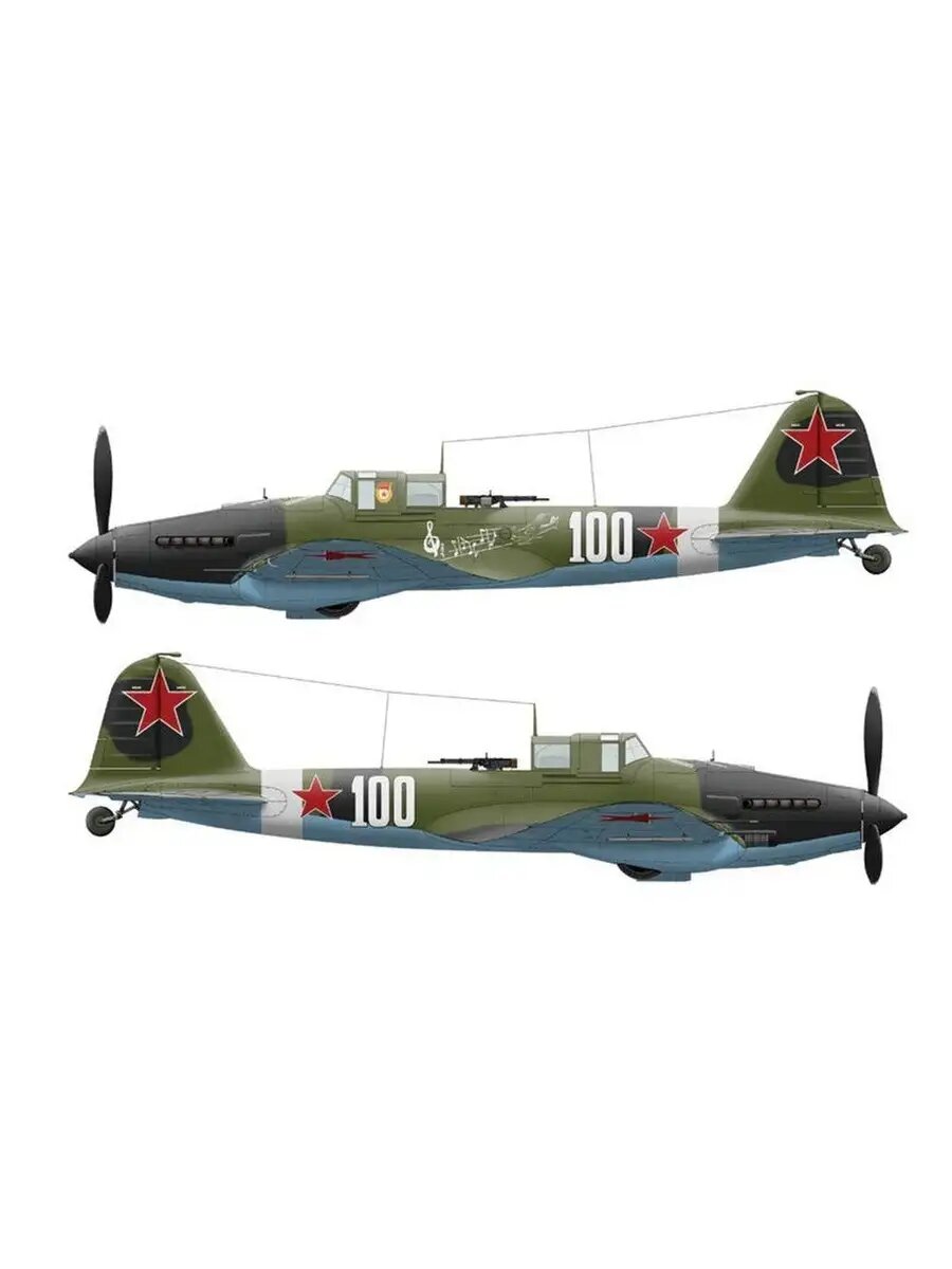 | Описание | Самолет "Ил-2" обр. 1942 года. Бронированный двухместный штурмовик Ил-2, легендарная «летающая крепость», не имел аналогов ни в одной из воевавших стран и стал полной неожиданностью для противника. Разнообразный состав вооружения (два пулемета калибра 7, 62 мм, две пушки калибра 20 или 23 мм, восемь реактивных снарядов калибра 82 или 132 мм и 400-600 кг бомб) обеспечивал поражение самых различных целей:от пехоты до танков и железнодорожных составов. Большую роль в увеличении огневой мощи штурмовика при атаке наземных целей сыграли новые реактивные снаряды М-8 и М-13 класса "воздух-земля", принятые на вооружение в 1942 году. |