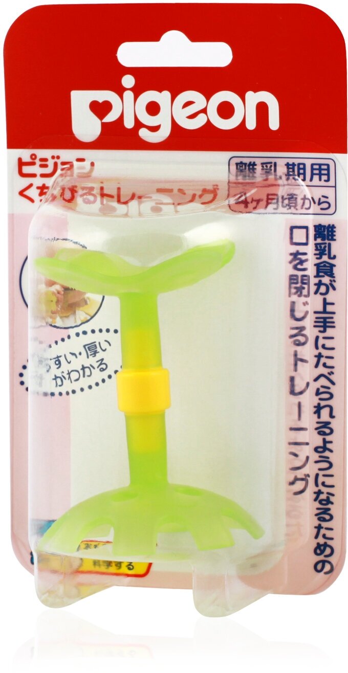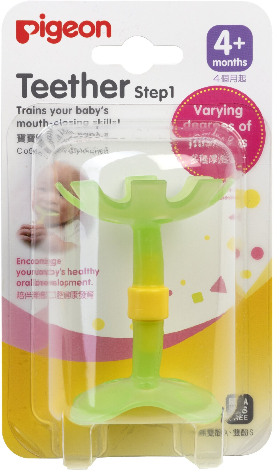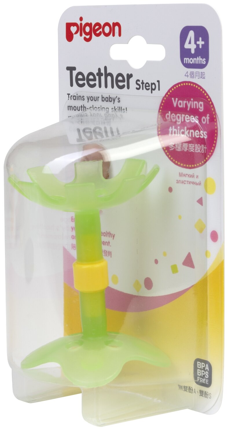 Мягкая удобная игрушка для детских зубов, выполненная из силикона в виде красивого цветочка на подставке. Развивает осязание и мелкую моторику.С 4 месяцевС держателемПрочныйЭкологичный материалОхлаждающийНе деформируетсяИгрушка-прорезыватель Pigeon предназначен для малышей от 4 месяцев. Выполненная из прочного эластичного материала, она не провоцирует травм десен, царапин кожи и неприятных ощущений. Может использоваться для малышей, склонных к аллергии. Детали соединены между собой с помощью яркого декоративного стержня, который придает привлекательности.ОсобенностиПрорезыватель создан в виде цветочка на стебле, с одной стороны которого подставка, с другой – сам цветок с резными мягкими лепестками. Легкий, без острых деталей и углов, пластичный.Благодаря специальной форме, модель удобно держать в руках. Малыш сможет без труда самостоятельно играть ею и не испытывать неудобств.Гладкая поверхность обеспечивает отсутствие дискомфорта, травмирования десен и боли.В процессе использования прорезыватель не крошится и не ломается, потому нет риска случайного проглатывания частиц.В создании игрушки использован безвредный материал и нетоксичные красители. Потому она не провоцирует аллергии и нежелательных реакций.По мере загрязнения легко мыть «цветочек» как вручную, так и с использованием щетки. Допускается стерилизовать его для обеззараживания поверхности.