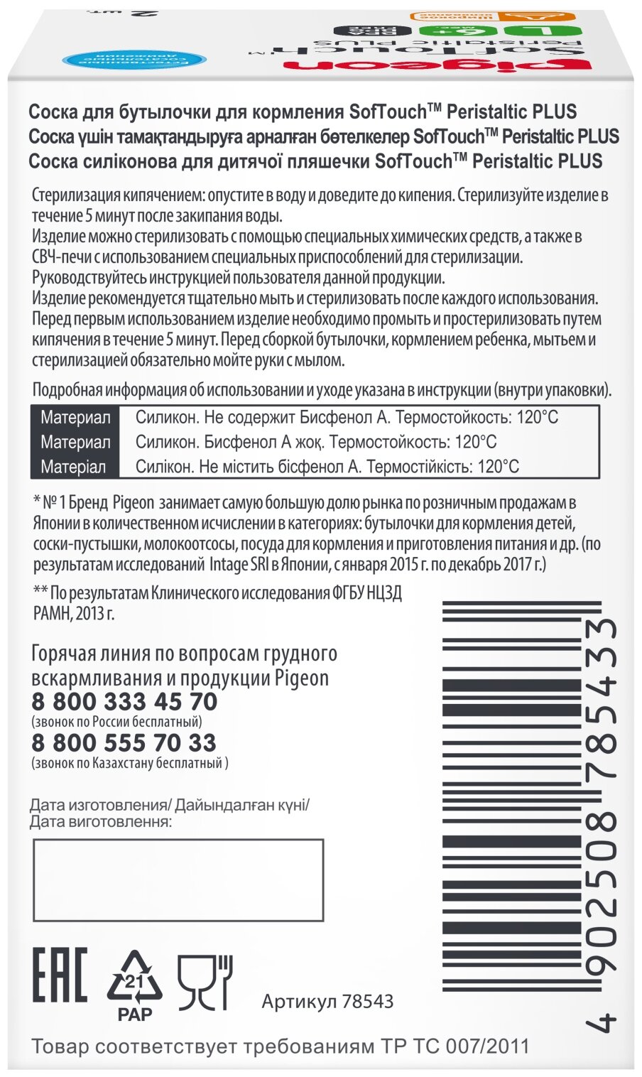 Сервис сравнения цен СкидкаГИД предлагает сравнить цены на товар «Набор сосок Pigeon Перистальтик плюс L силикон с 6 мес (1828)»