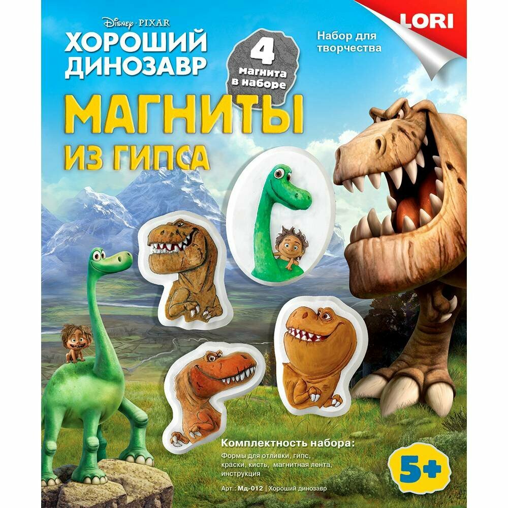 Набор для изготовления фигурок из гипса на магнитах от компании Лори. В результате увлекательной творческой работы ребенок получит 4 магнита на холодильник с героями мультфильма "Хороший динозавр". Для детей старше 5 лет.