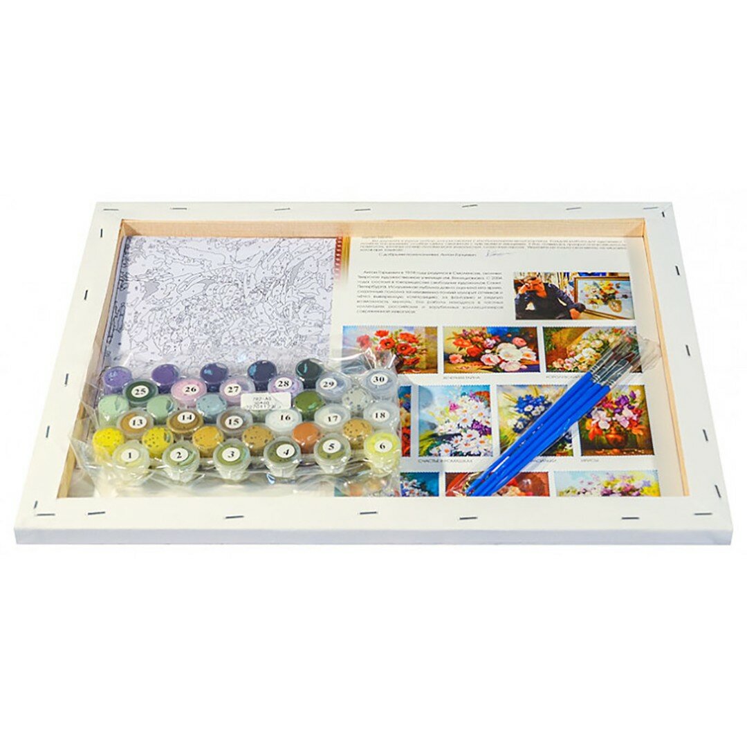 | Комплектация | холст на подрамнике с нанесенным рисунком - 1шт; контрольный лист с контурным рисунком - 1 шт; набор акриловых красок; 2 кисти; крепление для готовой картины - 1 шт |