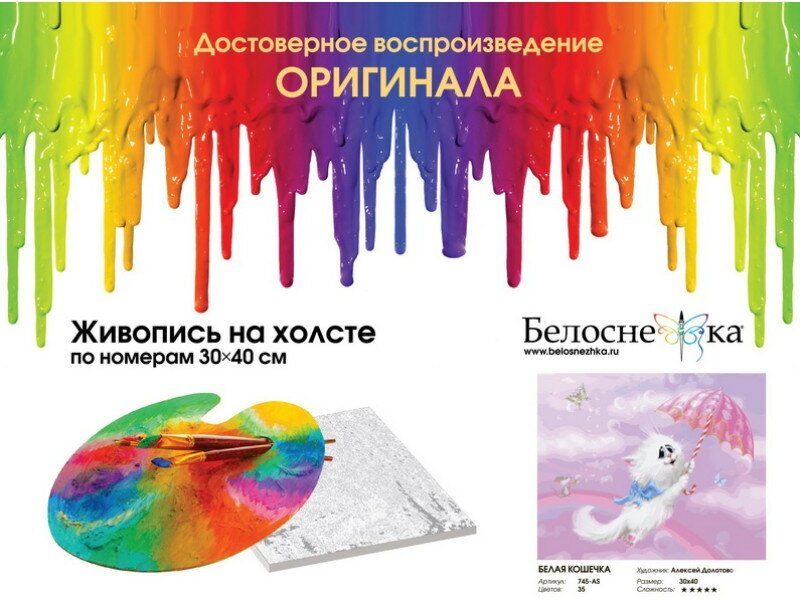 Сервис сравнения цен СкидкаГИД предлагает сравнить цены на товар «Роспись по холсту Белоснежка Белая кошечка 30*40см. Картина по номерам (745-AS)»