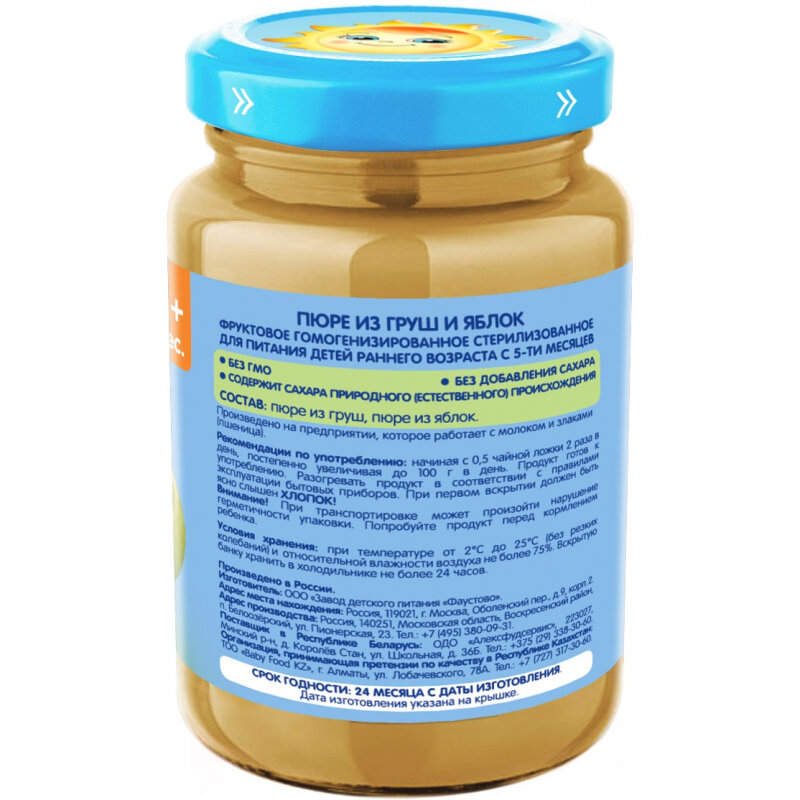 Пюре сделано из абсолютно натуральных продуктов без добавления консервантов, ароматизаторов, красителей, загустителей, сахара. Яблочно-грушевое пюре благотворно влияет на кровеносную систему ребенка, защищает слизистую желудка и кишечника малыша. Пюре богато витамином С и железом. Идеально подходит в качестве первого прикорма с 3.5 месяцев.