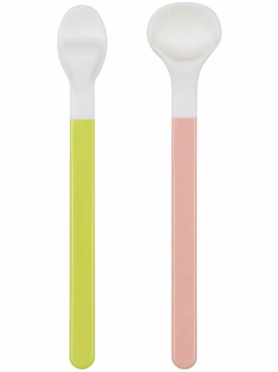 Рекомендованный возраст: с 5-6 мес. Материал: полипропилен, Hydrogenated styrene isoprene copolymer resin В набор входит: 2 ложечки. Набор ложечек для первого прикорма. Маленькая ложечка для каш и пюре, большая широкая - для водички, соков, бульонов напоминает край чашки, облегчает переход к приему жидкости из чашки. С безопасным ограничителем в основании (предотвращают от случайных травм). Размер и глубина ложки идеально подходят для рта младенца, чтобы кушать и пить маленькими глоточками.