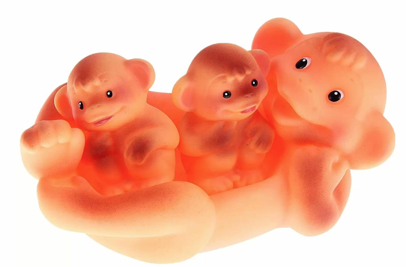 Мама-обезьянка и ее смешливая детвора непременно вызовут улыбку у вашего ребенка, и станут героями многих его забав. Такие игрушки отличаются хорошими параметрами влагостойкости и износостойкости, они не разобьются и не потрескаются со временем. Обезьянок можно грызть и мять, развивая мелкую моторику, и познакомиться с понятием формы и образа.