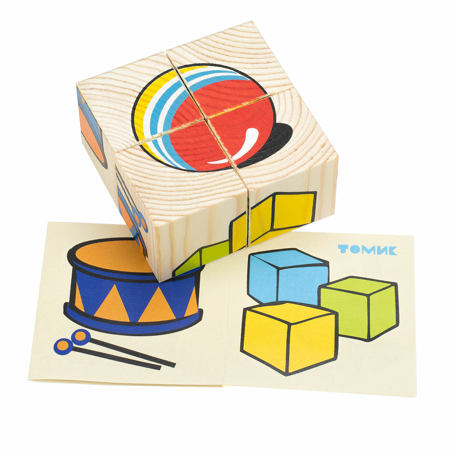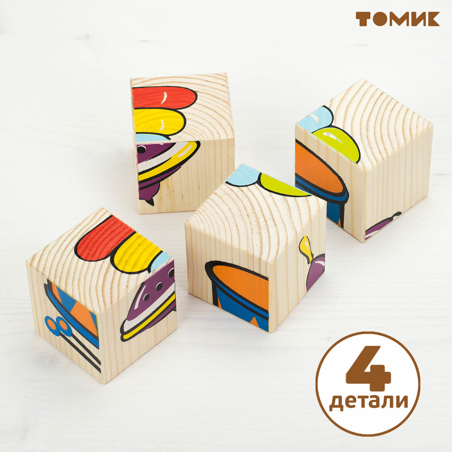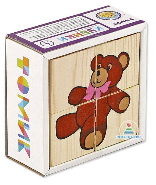 | Комплектация | 4 деревянных кубика, 6 картинок с изображениями |
