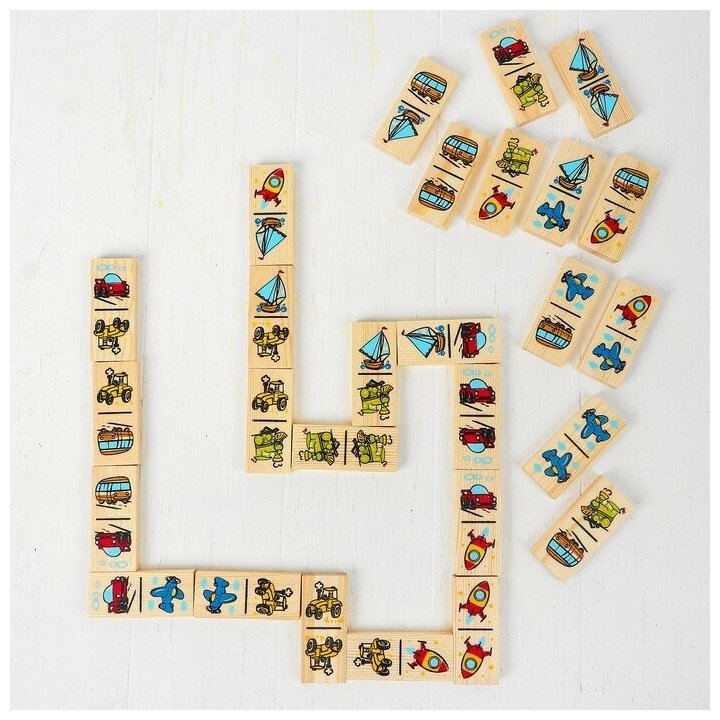 Детское домино Транспорт обязательно заинтересует Вашего ребенка. На нем изображены различные виды транспорта. В процессе игры малыш сможет познакомиться с их названиями. Пока ребенок маленький, можно выкладывать дорожки из костяшек домино, подбирая соответствующие картинки. С помощью этой игры ребенок научится анализировать, сопоставлять, сравнивать, выявлять логические связи между предметами.