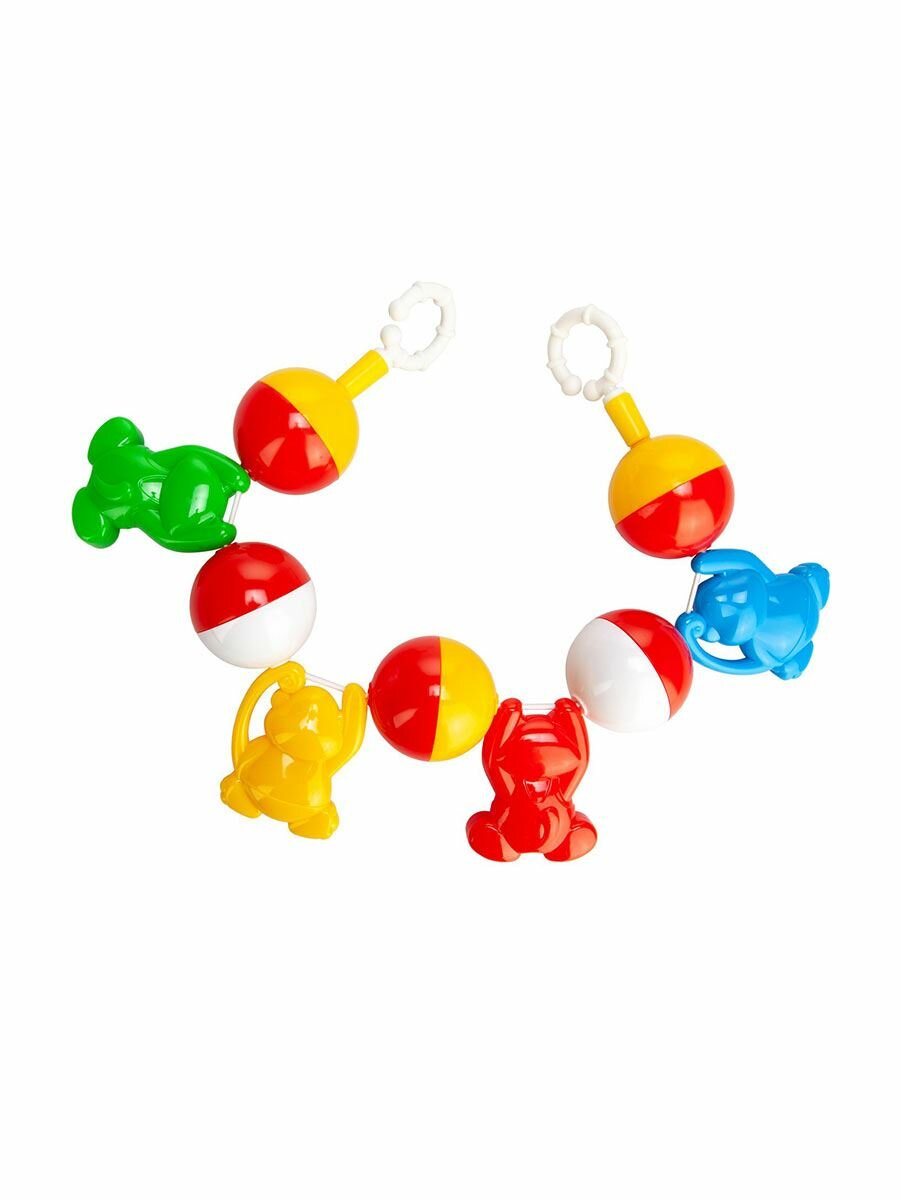 Погремушка-подвеска на кроватку Stellar "Котята и обезьянки" не оставит вашего малыша равнодушным и не позволит ему скучать! Подвеска представляет собой фигурки котят и обезьянок, а также шарики, нанизанные на резинку. Пря тряске горошинки внутри игрушек весело перекатываются и гремят, развлекая малыша. На концах резинки расположены пластиковые колечки, при помощи которых подвеску удобно закрепить на коляске, детском кресле или кроватке ребенка.