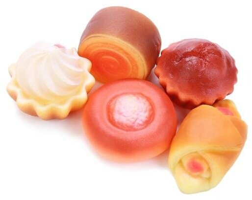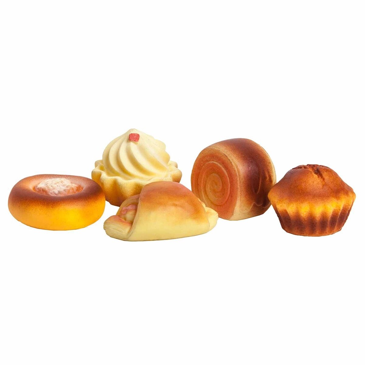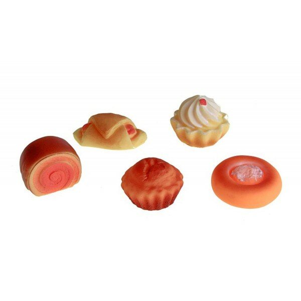 Многие девочки, играя в куклы, любят устраивать для них чаепитие. В этом случае как никогда пригодится данный набор. Он включает в себя 5 различных предметов выпечки. Все предметы очень мягкие на ощупь и выглядят, как натуральные. А самое главное их легко мыть, если они загрязнились. Набор продается в сетке с картонной полоской.