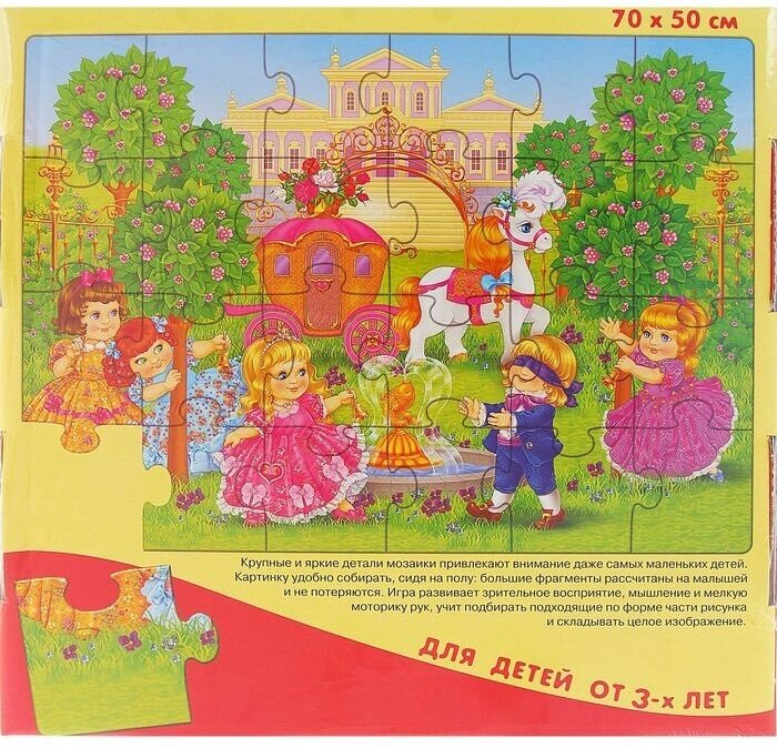 В последние годы большую популярность приобретают детские развивающие игры. С их помощью родители во время игры помогают крохам учиться и развиваться. Подходящий вариант найдётся для ребенка любого возраста. Направленностей у таких игрушек много – одни развивают тактильную память, другие зрительную, третьи развивают моторику, учат говорить и читать. Крупные и яркие детали мозаики Принцессы привлекают внимание даже самых маленьких детей.