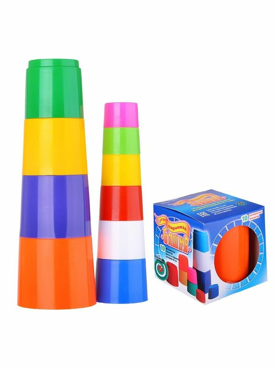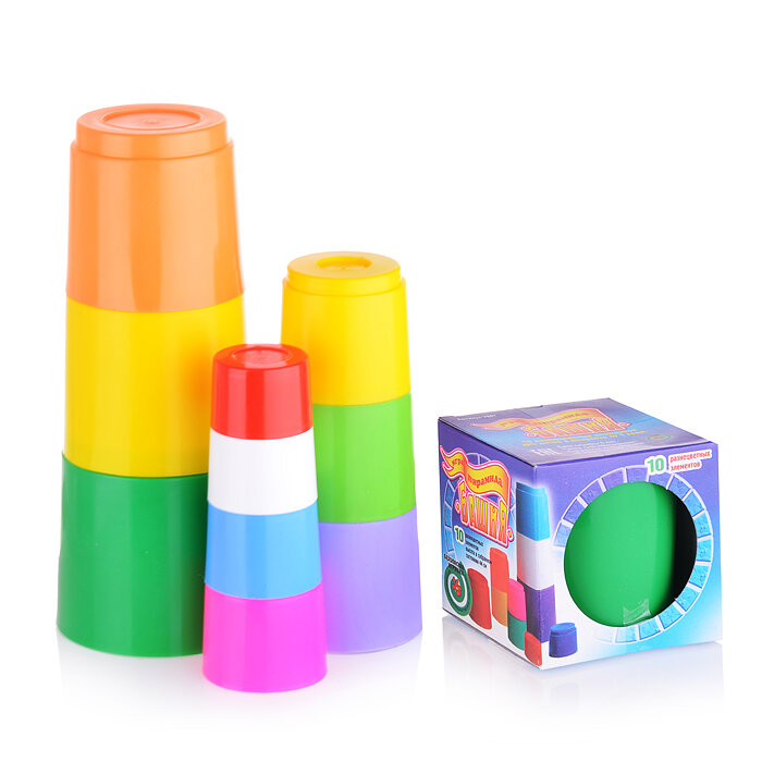 Развивающая Пирамида "Башня" (большая) – это настоящая игра-тренажер для развития мелкой моторики и координации движений рук у вашего ребенка. Состоит она из 10 «стаканчиков» разных по объему. Стаканчики можно как «вкладывать» друг в друга (на подобие того, как собирается матрешка), а можно собрать из «стаканчиков» башню. На верхушке пирамиды - самый маленький «стаканчик», а самый большой должен быть у основания.