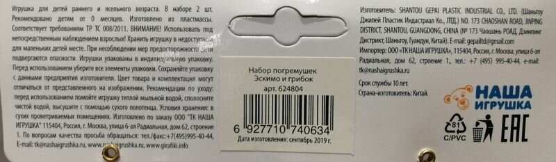 | Состав набора | погремушка; прорезыватель |