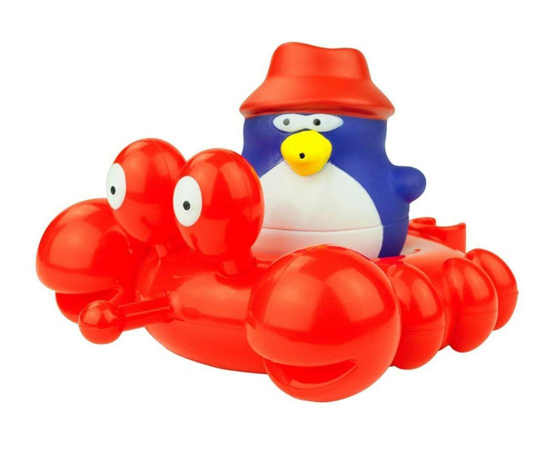 Игрушка для ванны Краб обязательно порадует малыша и сделает принятие ванной и водные процедуры забавным развлечением. Очаровательный пингвин-покорители водной стихии передвигается по воде на крабе. Его можно использовать отдельно, или соединить с другими игрушками из той же серии. Так места хватит для большего количества пассажиров. Яркие впечатления и звонкий смех станут постоянными явлениями во время купания. Игрушки выполнены из высококачественных материалов, поэтому они не принесут никакого вреда ребенку.
