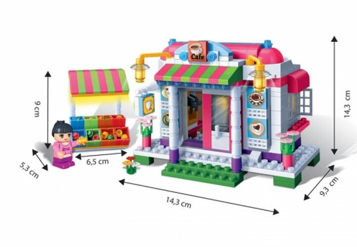 Развивающий конструктор Кафе состоит из 338 пластиковых ярких цветных деталей и нескольких фигурок детей. Такой конструктор привлечёт внимание любой девочки, которая придёт в полный восторг, получив его в подарок. Ведь благодаря нему она сможет построить большое уютно кафе, придумывая разнообразные сюжетно-ролевые игры с ним. Играя с этим конструктором, ребёнок сможет развить воображение, внимательность, мелкую моторику пальцев, координацию движения рук, а также усидчивость, логику, мышление и цветовое восприятие.