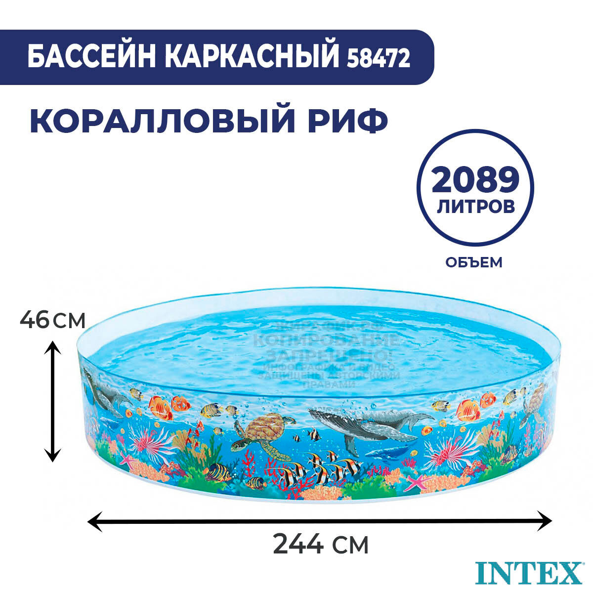 Бассейн жесткий intex 58472.Детский каркасный бассейн диаметром 244х46см, выполнен из полихлорвинила (ПВХ). Перед установкой выберите плотную и ровную поверхность, без острых камешков и пр. предметов.Детский бассейн intex 58472 не нуждается в подготовке, его не надо надувать, необходимо достать из коробки развернуть, а затем залить водой.Вместимость бассейна - 800 литров при наполняемости в 80 процентов.В наборе есть ремкомплект. Внимание! Товар представлен в нескольких видах без возможности выбора. Цена указана за 1 шт.