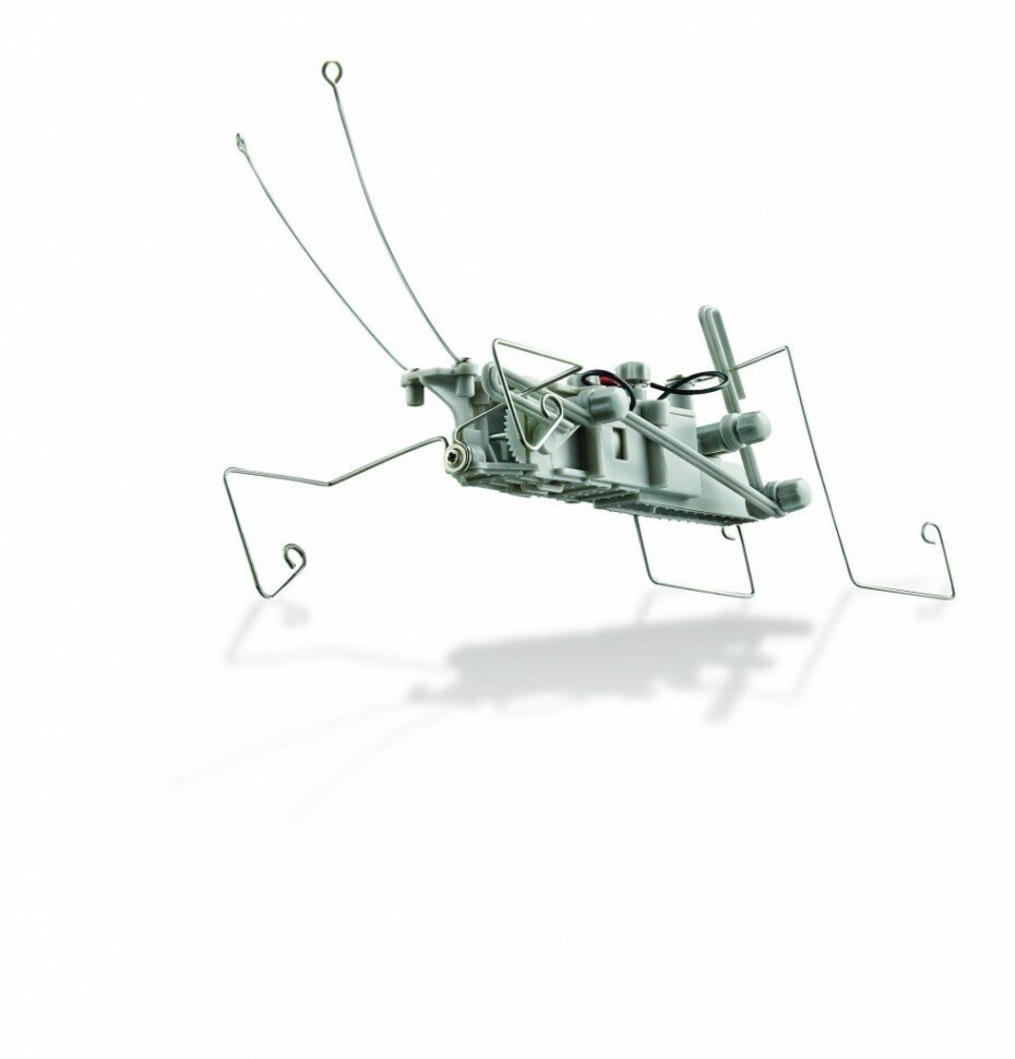 | Состав набора | крышка, корпус-тельце, соединитель для ног, мотор с редуктором, большая шестеренка с кривошипом, малая шестеренка, 2 наконечника, 3 соединительных колпачка, 2 винта с шайбами, 9 винтов, крышка батарейного отсека, малый шатун, большой шатун, 2 антенны, передняя нога, задняя нога, подробная инструкция. |