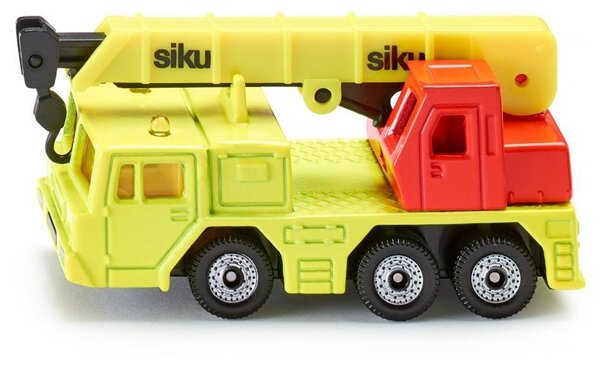 Siku Грузовик с гидравлическим краном Игрушечная модель гидравлический автокран. Корпус и кабина выполнены из металла, лобовое и боковые стёкла из прозрачной пластмассы, колёса выполнены из пластика и вращаются, можно катать. Стрела поднимается, выдвигается и поворачивается. Немецкая компания Siku производит игрушки, соответствующие самым высоким требованиям к качеству и безопасности.