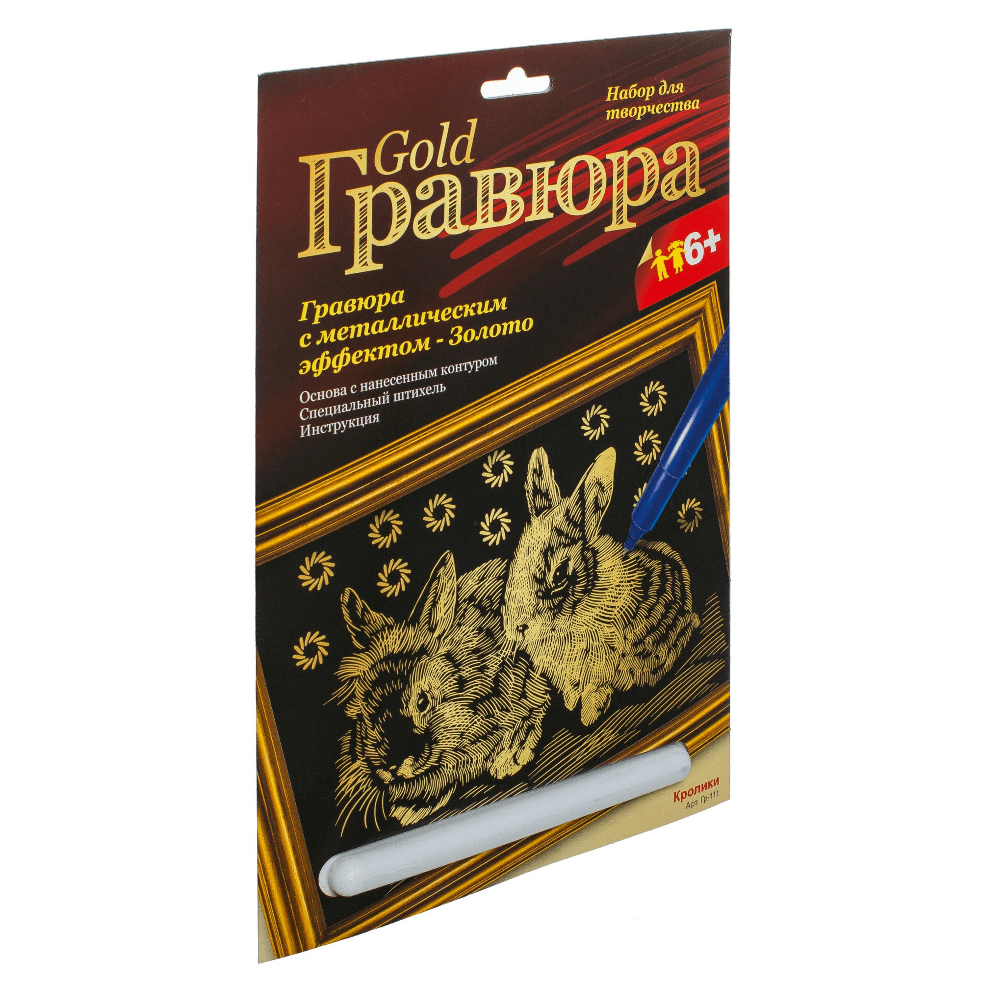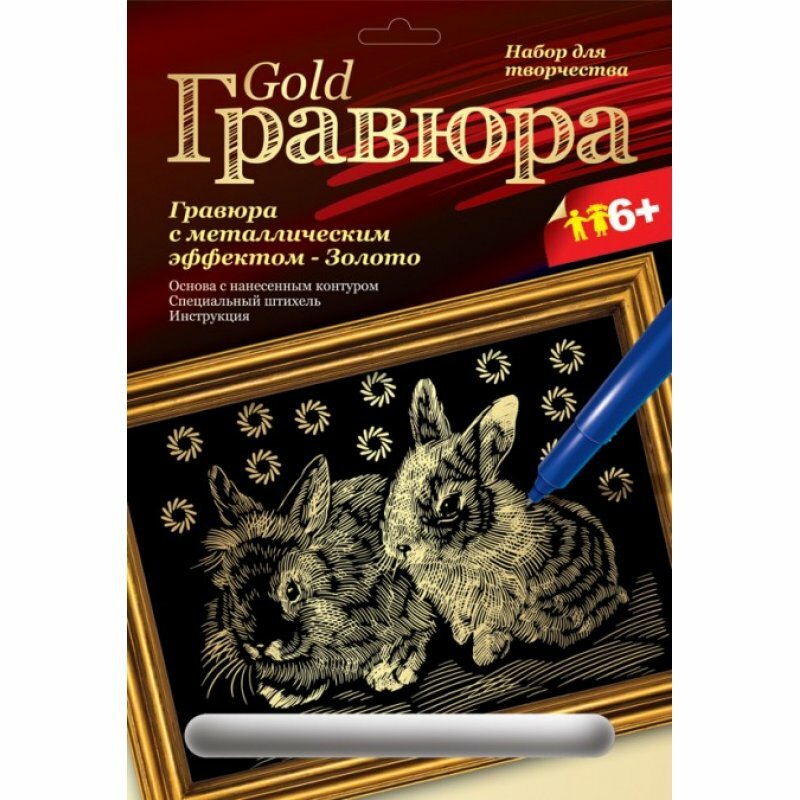 Гравюра с металлическим эффектом - Золото "Кролики" от бренда LORI - это замечательный набор для творчества, с помощью которого Ваш ребенок может прикоснуться к искусству и самостоятельно создать необычную картину. В наборе уже есть все необходимое для работы. Вам необходимо будет сцарапать верхний слой с основы, с помощью специального штихеля. В результате у Вас получится потрясающее изображение парочки милых зверьков.