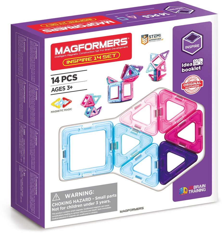 Магнитный конструктор Magformers Pastelle 14 63096 — один из бестселлеров Magformers 14 — теперь в пастельных тонах. Цветовая гамма этого набора — нежные оттенки розового и голубого. Как и любой конструктор Magformers, «Pastelle 14» полностью совместим с другими наборами. Набор Magformers Pastelle 14 содержит 14 элементов. Магнитный конструктор MAGFORMERS 14 пастель — классический игровой конструктор теперь в пастельных тонах. Цветовая гамма этого набора — нежные оттенки розового и голубого.