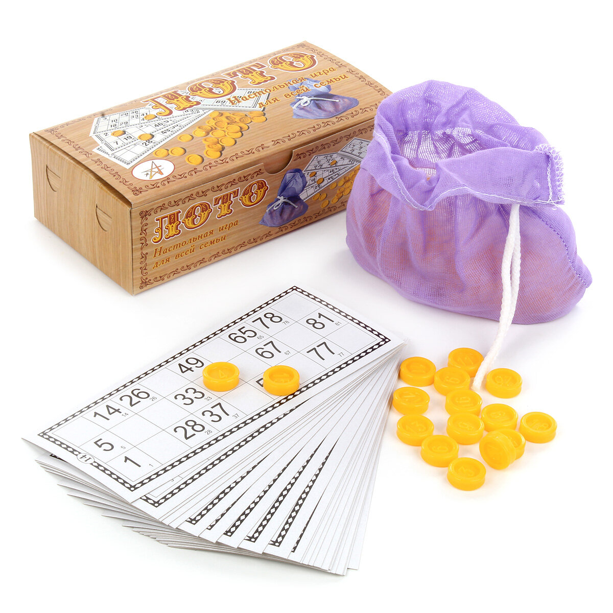 | Комплект игры | фишки, карточки, мешочек |