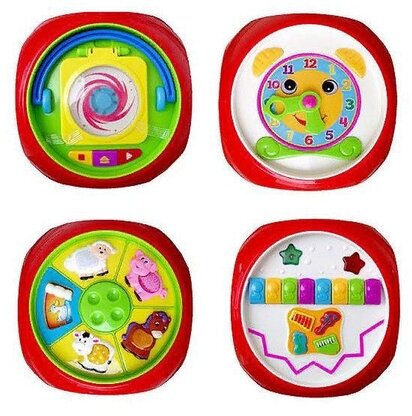 Мультикуб - оригинальная музыкальная и развивающая многофункциональная игрушка, настоящий игровой центр, озвученный на русском языке. На 6 сторонах куба расположены пианино с 8 разноцветными клавишами и кнопки, передающие звучание четырех различных музыкальных инструментов, изображения домашних животных с вставками из различных тканей, веселые часы, мышиная норка и музыкальный плеер со специальным диском, который проигрывает замечательные песенки об утренней зарядке. Животные при нажатии читают стишки, из норки выпрыгивает смешная мышка и произносит считалку. Благодаря часам малыш научится соблюдать режим дня, а пианино познакомит его с удивительным миром музыки. Познавайте мир с удивительным Кубом! Блестящие огоньки, забавные мелодии - что еще нужно крохе для увлекательного, интересного и полезного времяпровождения!