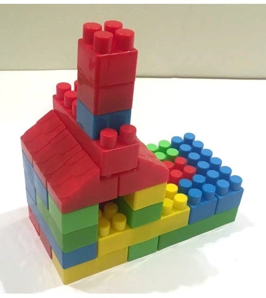 Конструктор состоит из разноцветных деталей разной длины. В наборе: платформы с колесами, оконные, дверные рамы и крыши для строительства домов, съемные корпусы машин, фигурки деревьев, модули забора с основаниями. Игра способствует развитию мелкой моторики и координации движений обеих рук, образного и пространственного мышления, воображения.