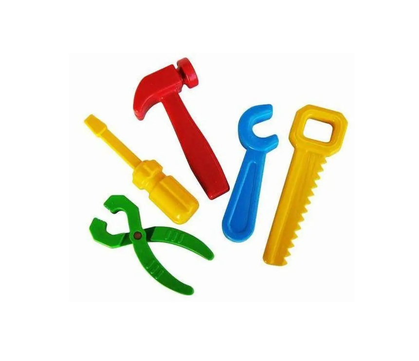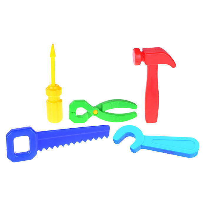 Набор "Маленький умелец" придется по вкусу юному папиному помощнику. В набор входят 5 инструментов: зеленые клещи, желтая отвёртка, красный молоток, синий гаечный ключ и желтая пила. С помощью этого набора ваш малыш научится пользоваться строительными инструментами и ремонтировать сломанные предметы.