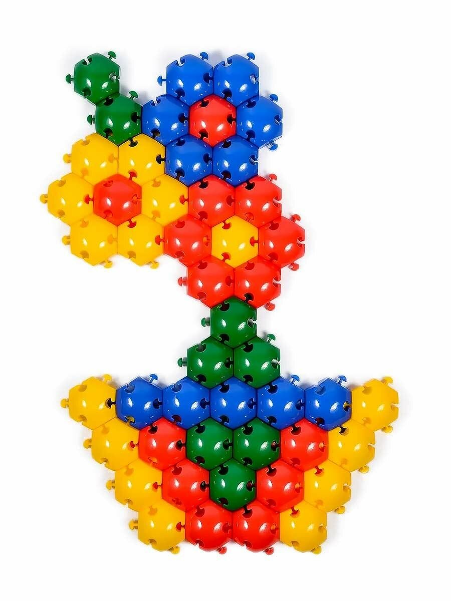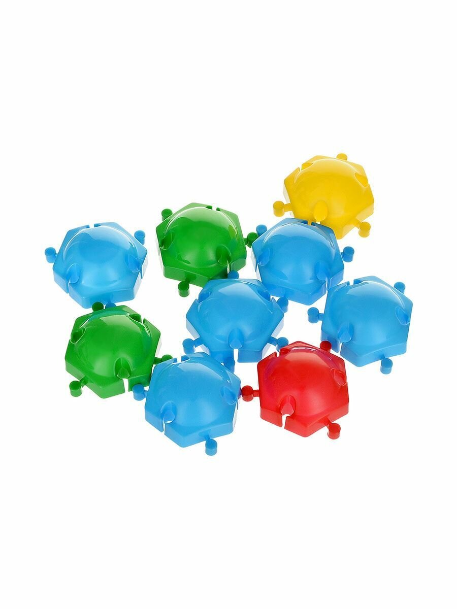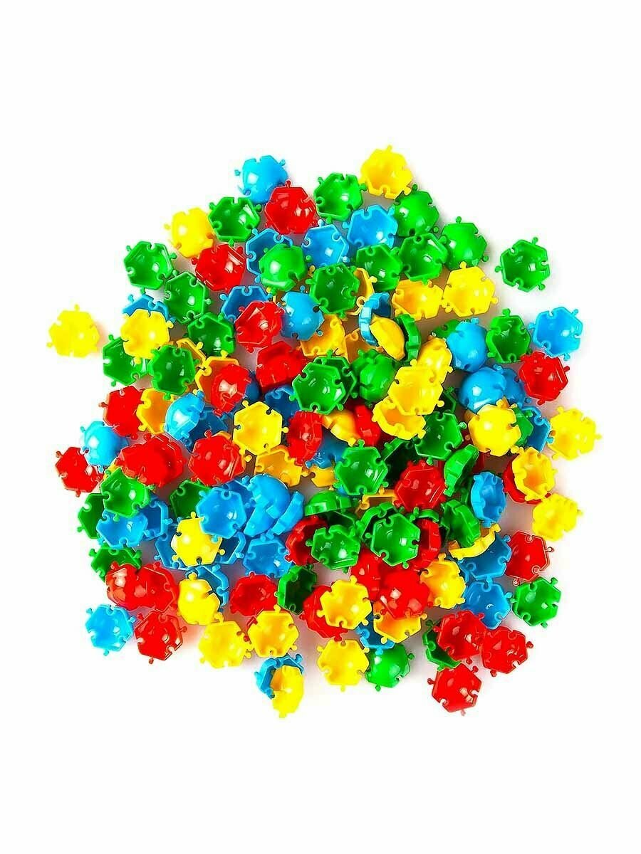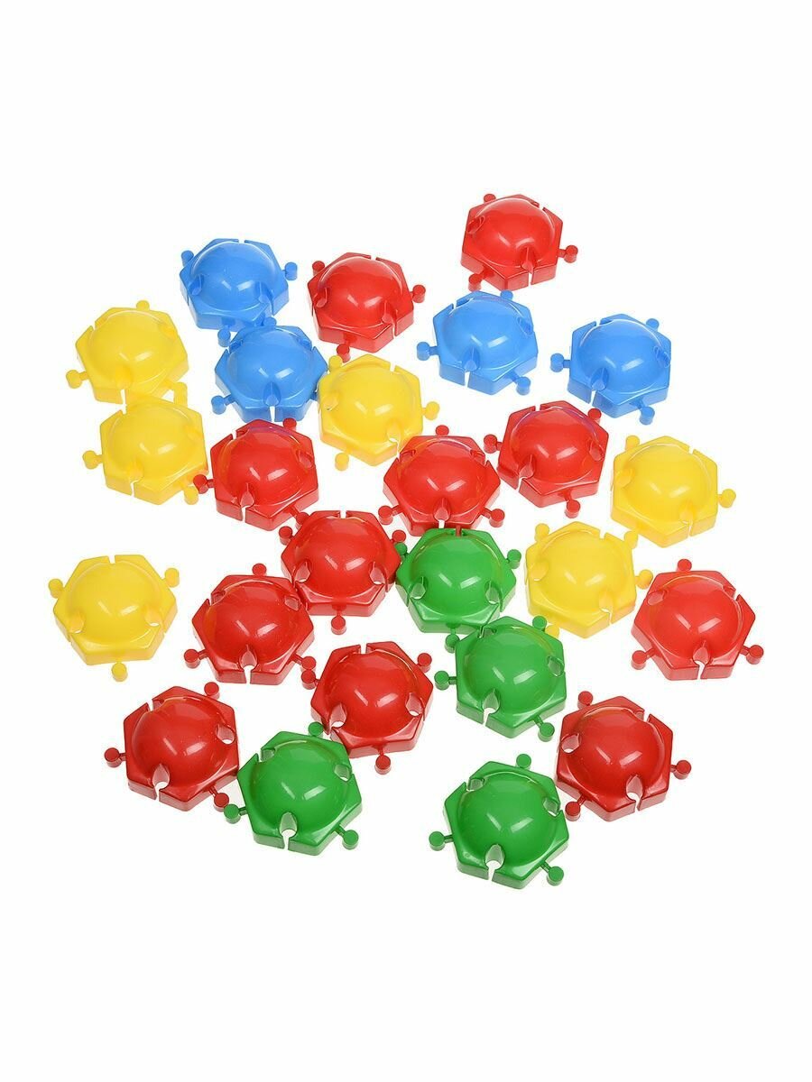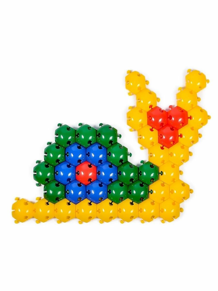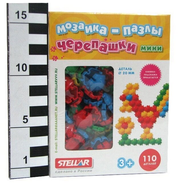 Набор из 110 деталей предоставляет возможность собрать различные цветные картины, сборка которых не требует специальных навыков. Элементы пазлов выполнены в форме маленьких черепашек и выполнены в ассортименте из 4 цветов. Процесс сборки не требует специально подготовленной поверхности и может производиться в любом удобном месте.