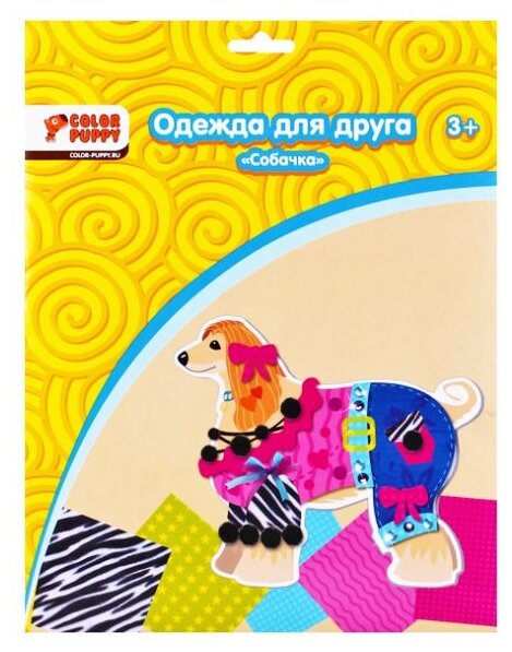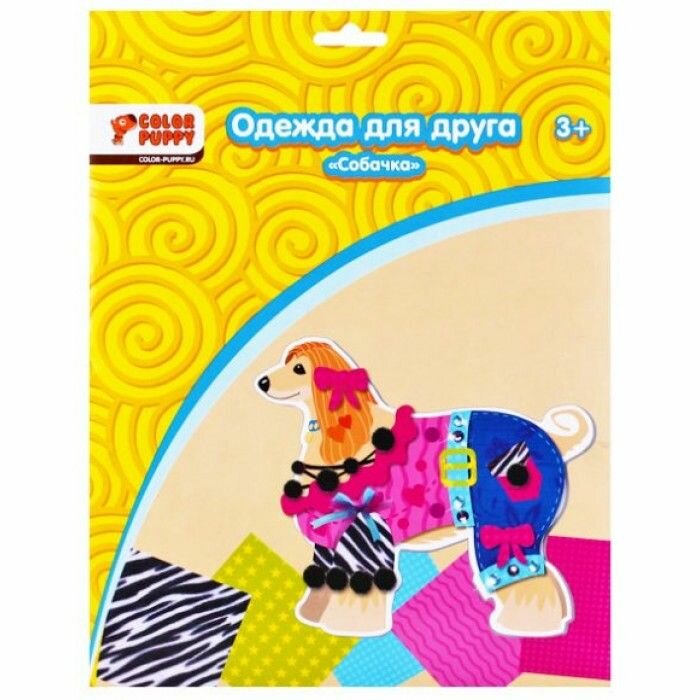 Дети часто стремятся одеть своих питомцев, но последним это не всегда нравится. Чтобы уберечь ваших животных от ненужных им одежек, подарите своему ребенку новый набор для творчества Одежда для друга. Собачка производства компании Color Puppy. В комплект входит фигурка собачки из картона, стразы, ленты, цветные бумажные стикеры и инструкция.