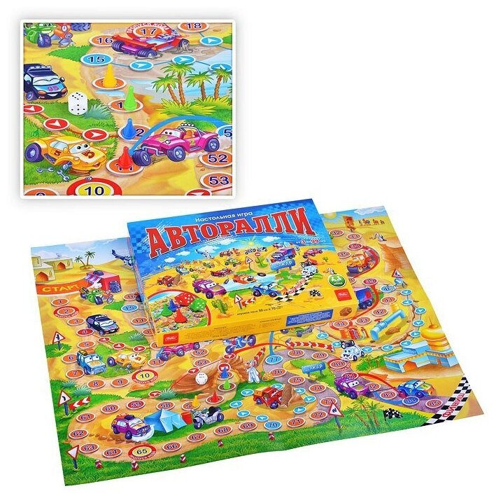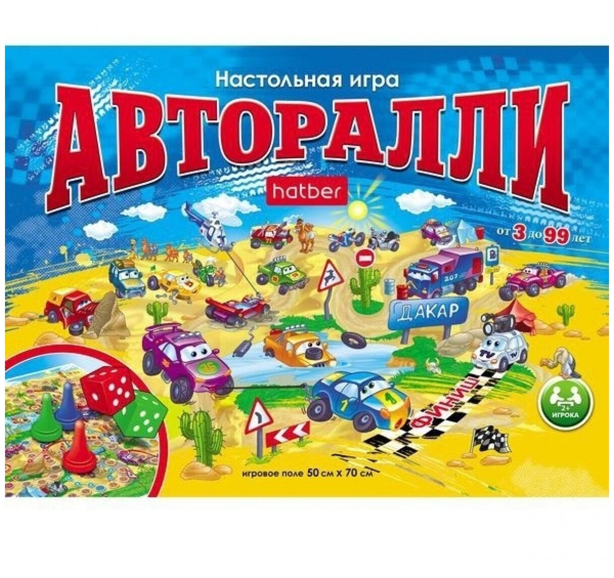 Настольная игра Авторалли -это традиционная игра, созданная в жанре ходилки со множеством фишек, карточек и парой кубиков. Смысл игры достаточно прост:первый добравшийся до финиша игрок становится победителем веселых гонок. Яркое игровое поле с изображением разнообразных машинок и дорожных знаков сделает процесс игры еще более интересным и увлекательным. Такая развивающая игра надолго займет ребенка и не даст ему заскучать.