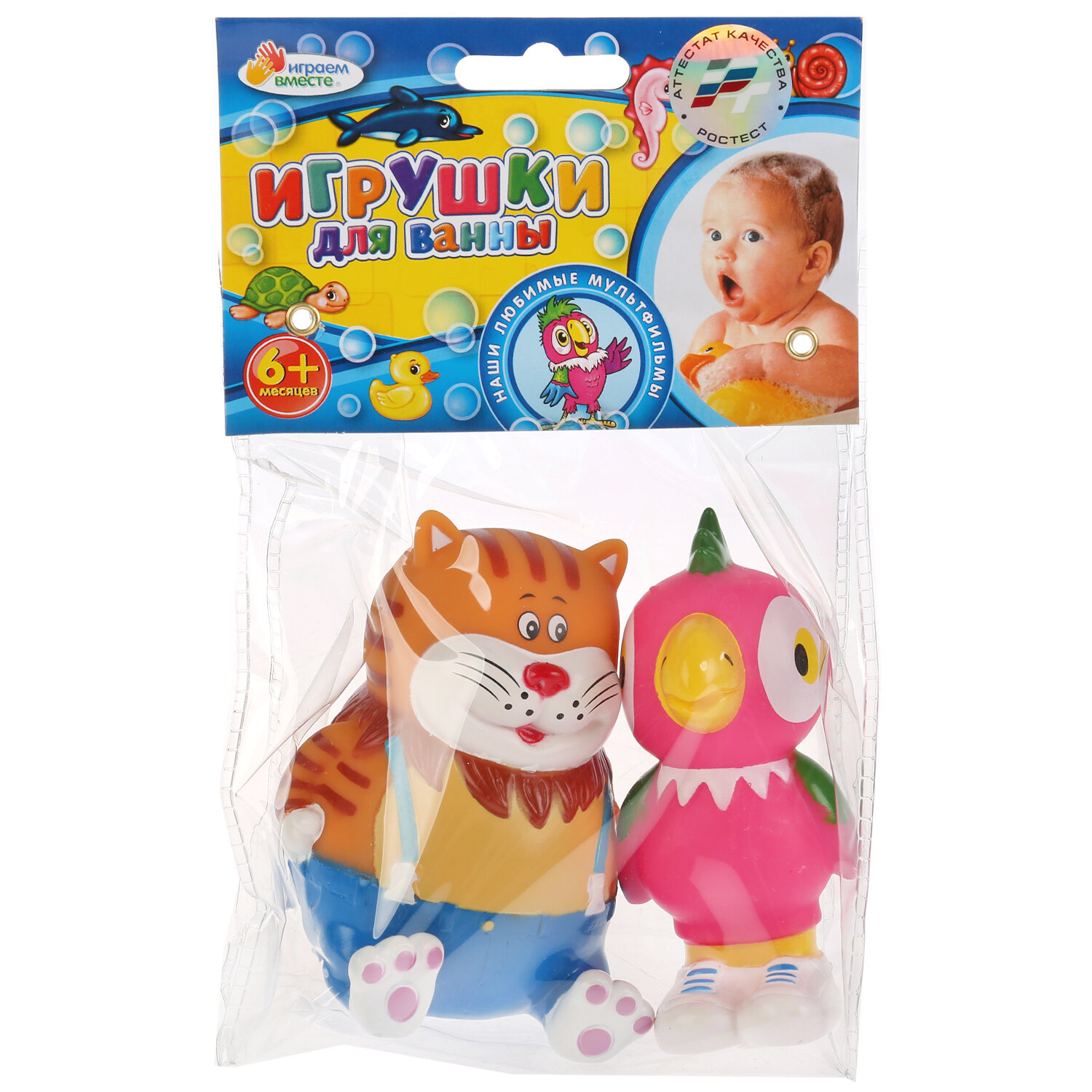 Набор игрушек для ванны Играем вместе Кеша и Кот непременно понравится вашему ребенку и превратит купание в веселую игру! Яркие игрушки выполнены из безопасного ПВХ в виде Кеши и Кота - персонажей мультфильма Возвращение блудного попугая. Если сжать игрушки, раздастся веселый писк. Оригинальный стиль и великолепное качество исполнения делают этот набор чудесным подарком к любому празднику, а жизнерадостные образы представят такой подарок в самом лучшем свете.