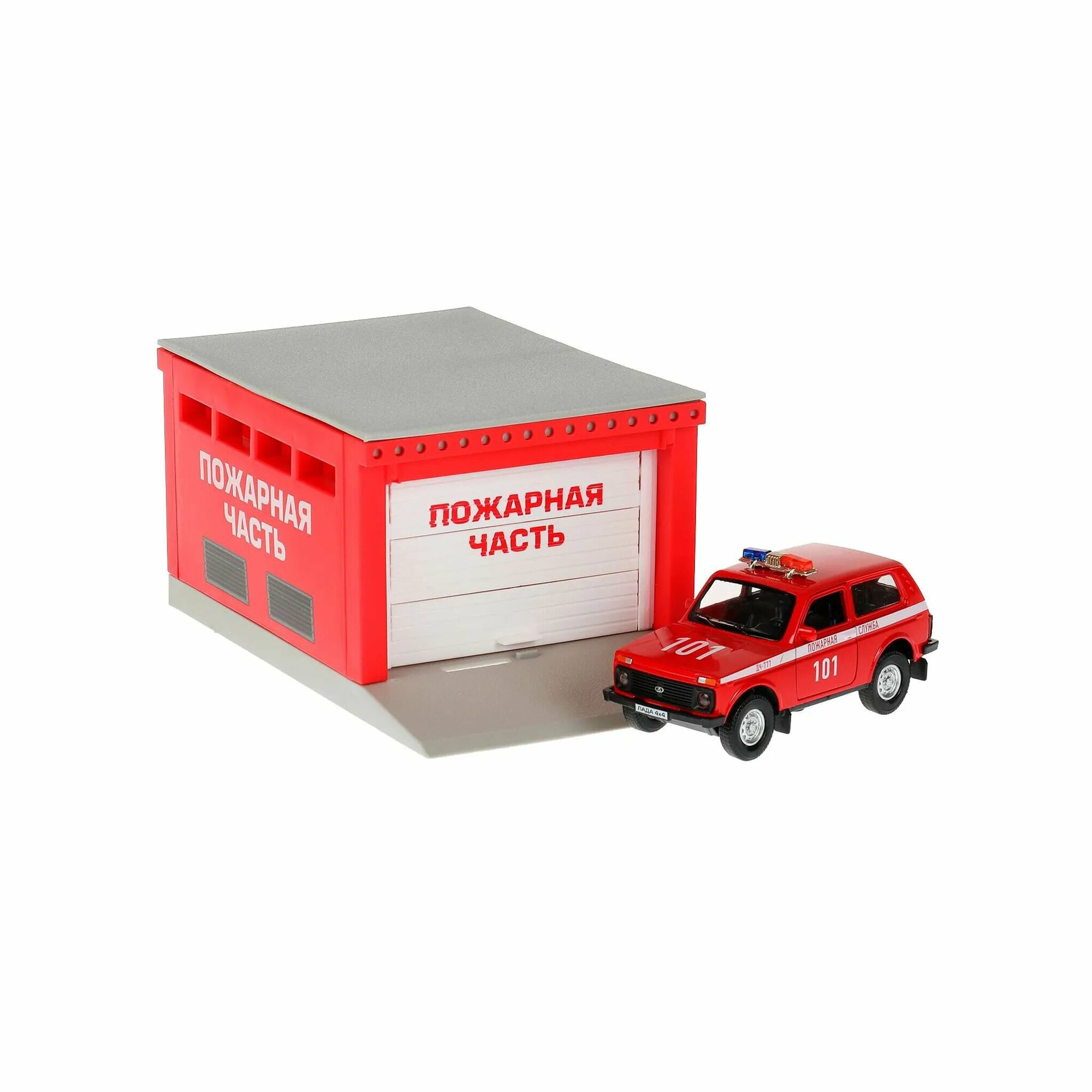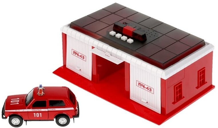 | В комплекте | гараж с пожарными кабинками дежурного, спуск для машин, машинка |