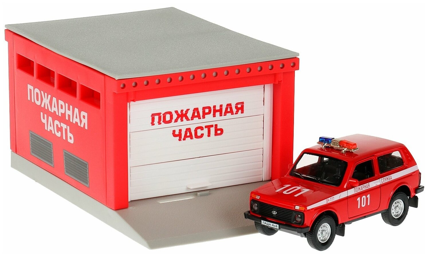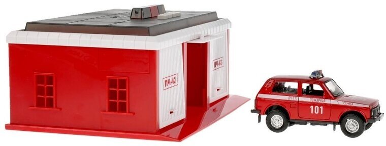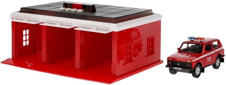 Гараж-паркинг Технопарк Пожарная часть с машинкой (2201B-R) (размер: машинка)