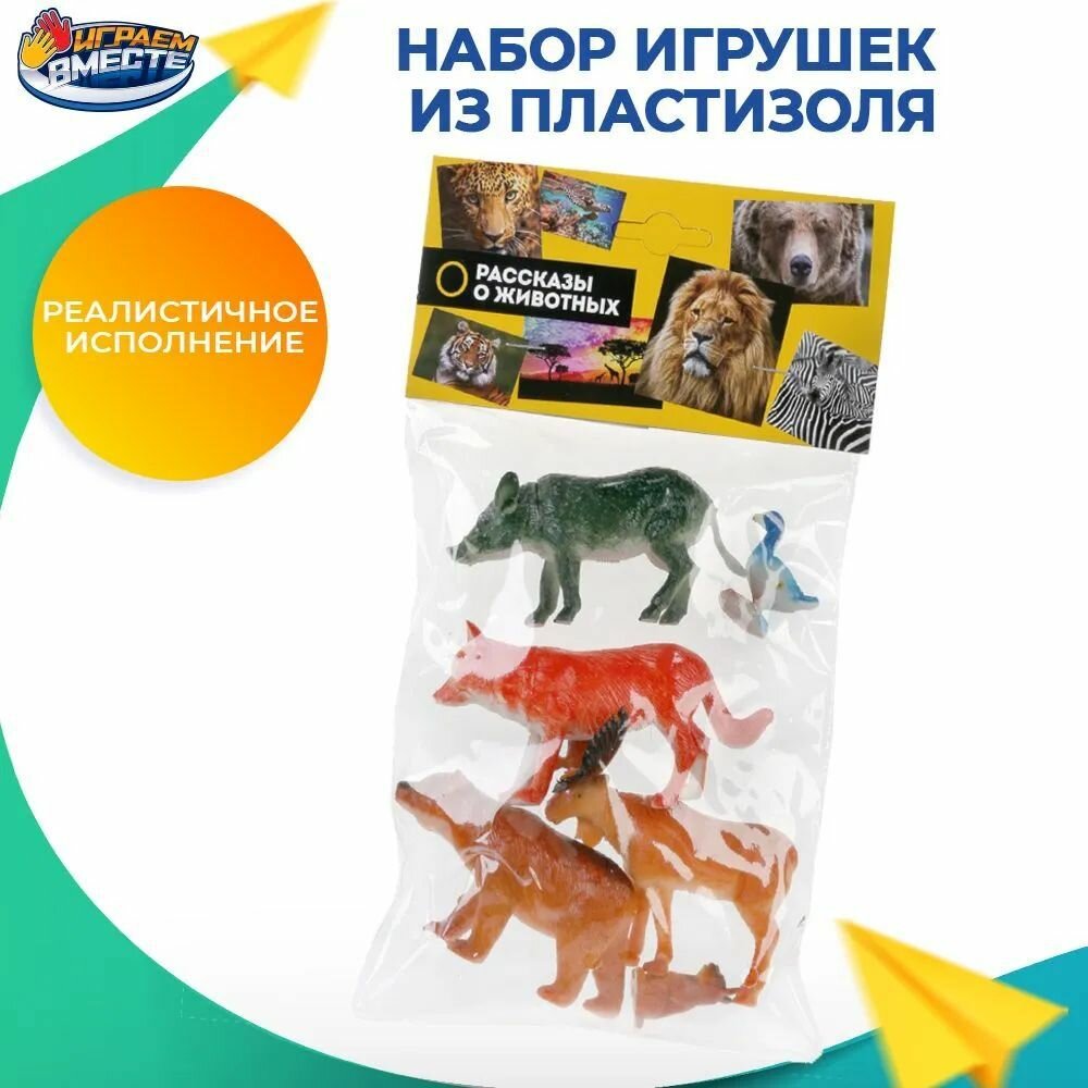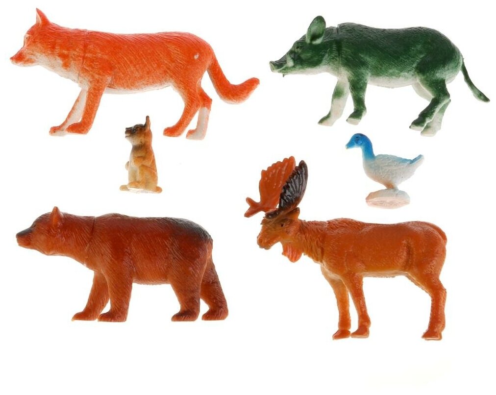 Играем вместе С набором из 6-ти фигурок лесных животных будет интересно изучать мир зверей нашей планеты. Игра с фигурками расширяет кругозор, способствует развитию памяти и речи ребенка. С животными можно придумывать множество игр и пополнить свою коллекцию. Набор изготовлен из качественного и экологически чистого пластика.