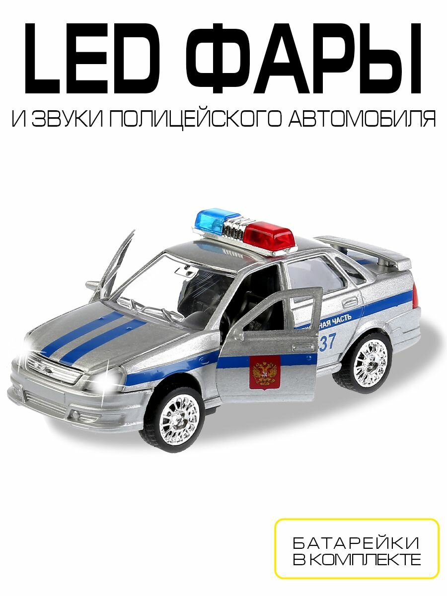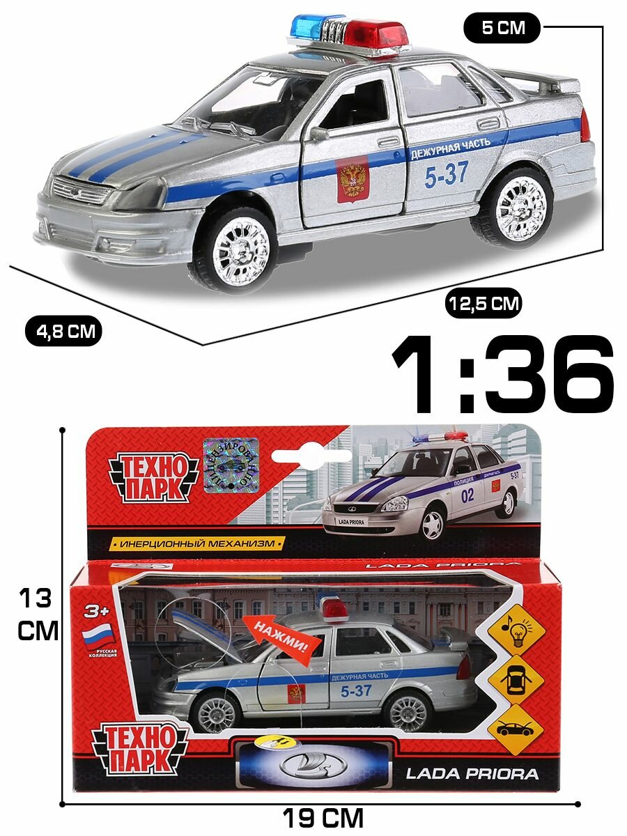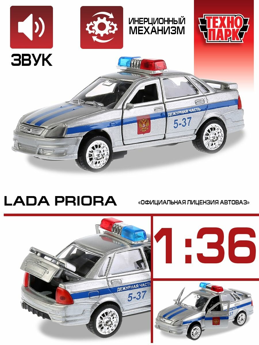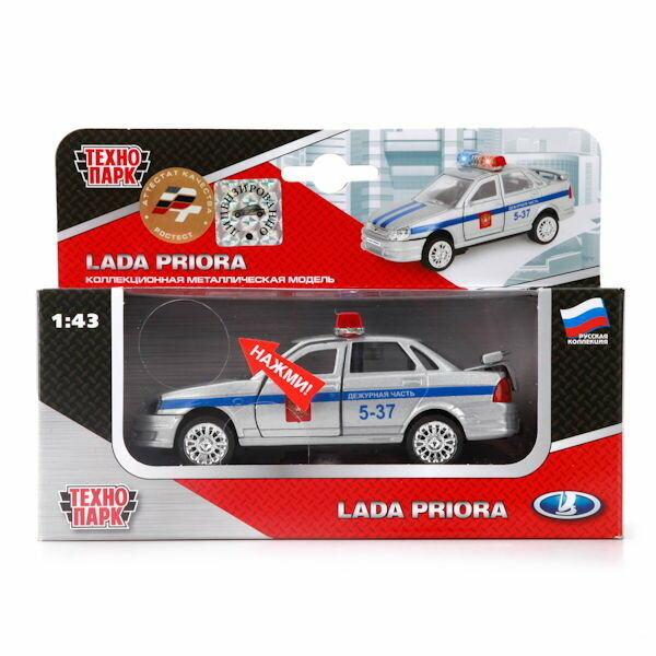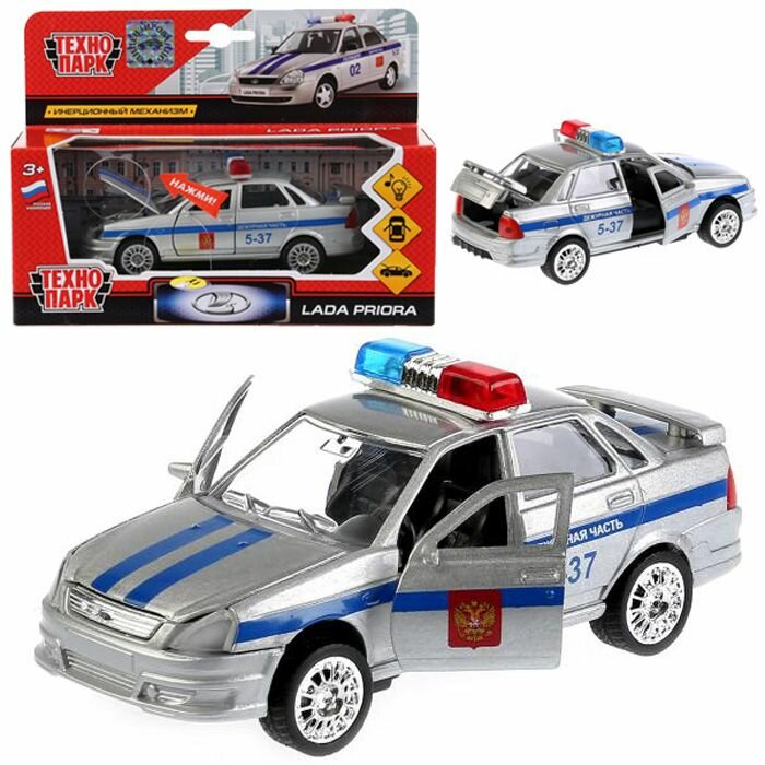 Модель Lada Priora является точной копией автомобиля, используемого в отечественных дежурных частях. Среди прочего, она может похвастать открывающимися дверями и детальной проработкой салона. Поддержка звуковых и световых эффектов делает игру с машинкой еще интереснее — она не только выглядит, но и звучит совсем как настоящая. Работающая мигалка дополняет картину.