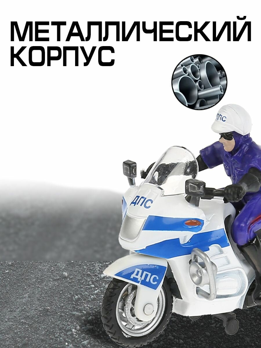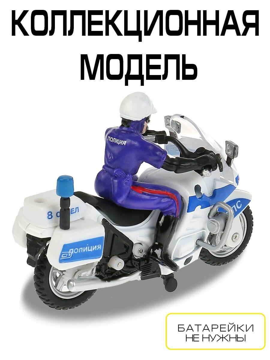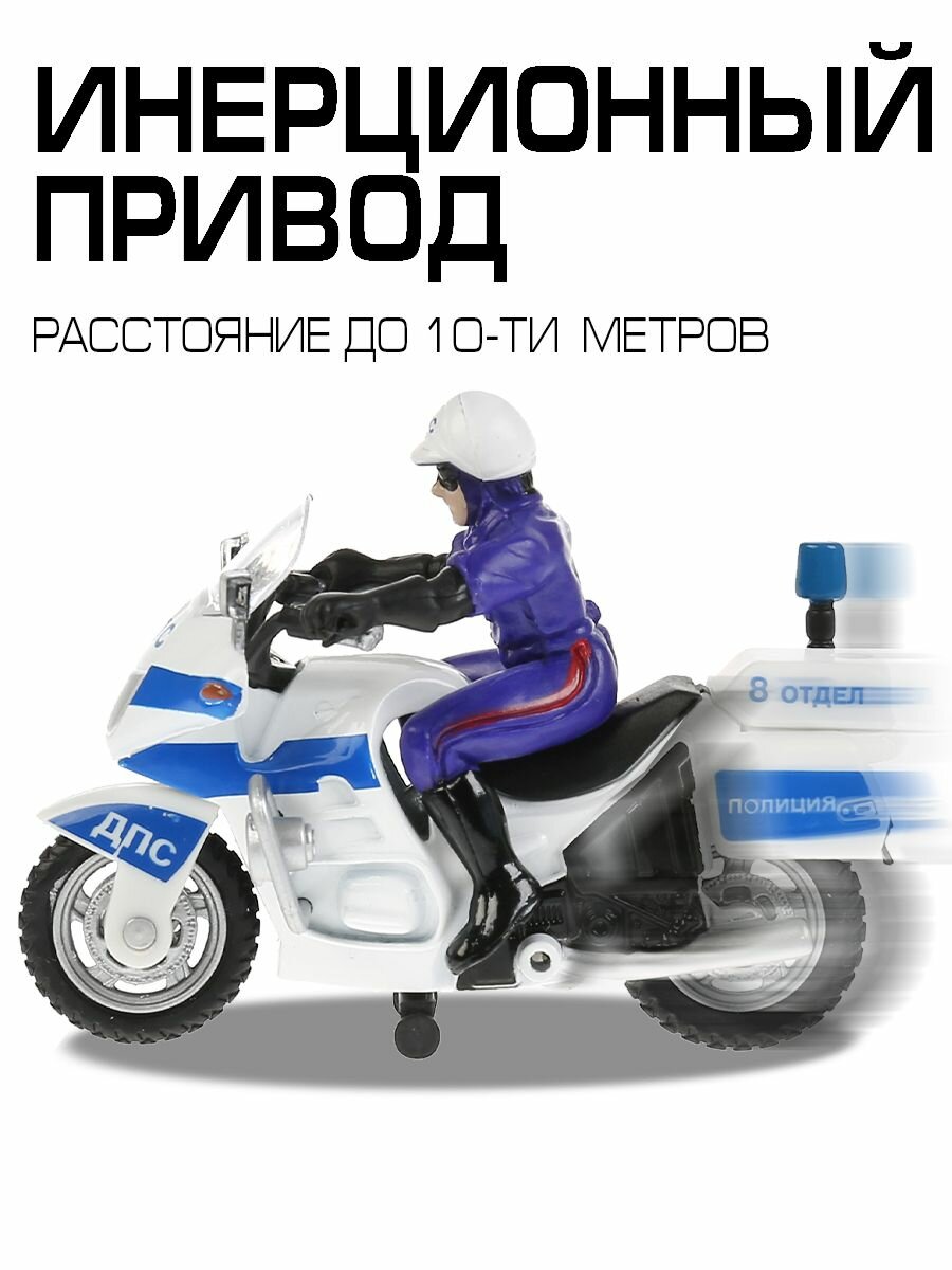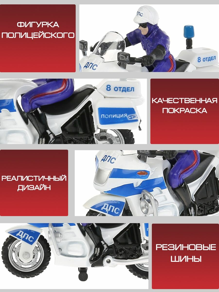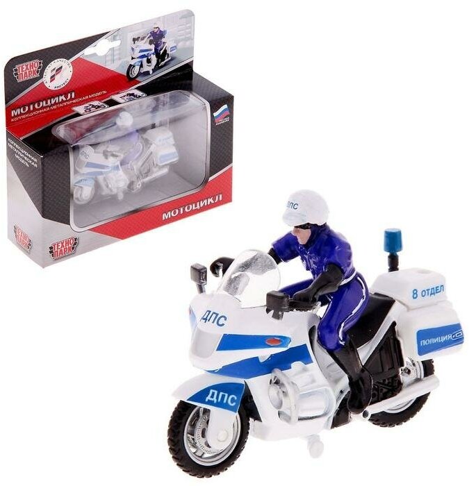 Мотоцикл с фигуркой привлечет внимание вашего ребенка и не позволит ему скучать. Игрушка выполнена из пластика в виде полицейского мотоцикла с инспектором ДПС. Игрушка оснащена инерционным механизмом: стоит откатить мотоцикл назад, затем отпустить - он поедет вперед. Ребенок с удовольствием будет играть с этой игрушкой, придумывая разные истории. Порадуйте его таким замечательным подарком!