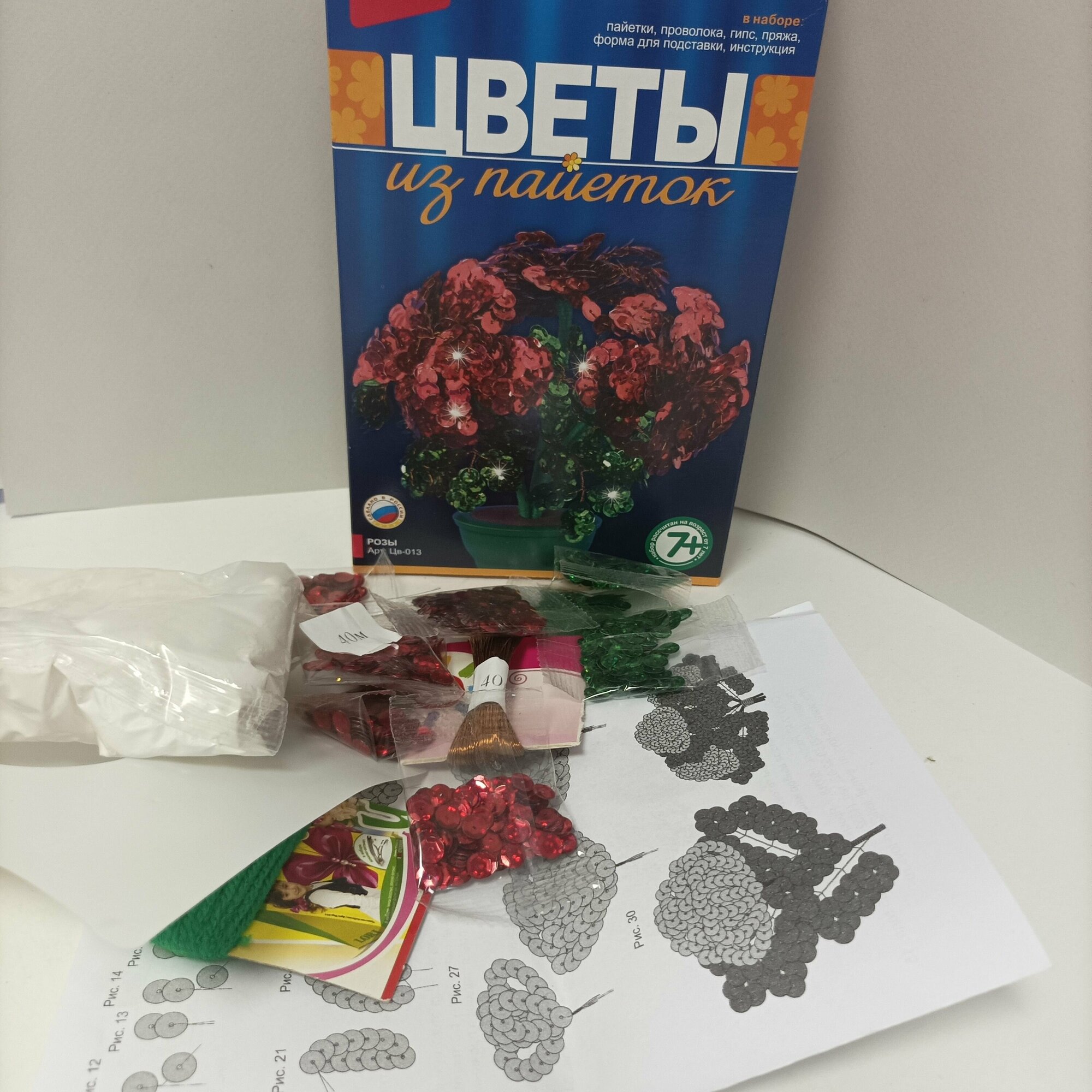 Серия наборов "Цветы из пайеток" открывает новые просторы для творчества юным рукодельницам! С помощью полюбившейся увлекательной техники плетения фигурок и украшений из бисера и пайеток Ваш ребёнок сможет создать чудесные цветы! Полученные яркие изделия могут украсить интерьер или стать оригинальным подарком родным и друзьям!