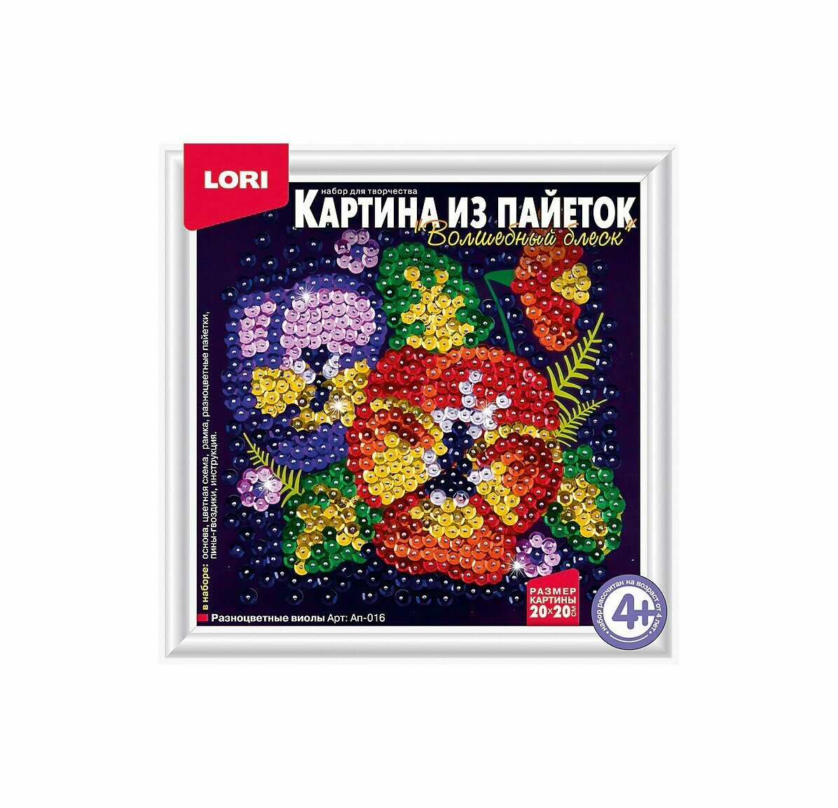 С помощью наборов этой серии Ваш ребенок сможет создать великолепную картинку из пайеток на цветной основе, которая станет не только отличным украшением дома , но и запоминающимся подарком для друзей и родственников.