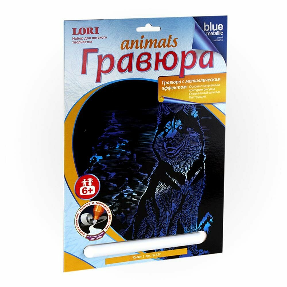Набор для творчества Lori Animals Гравюра с эффектом синий металлик Хаски (Гр-427)