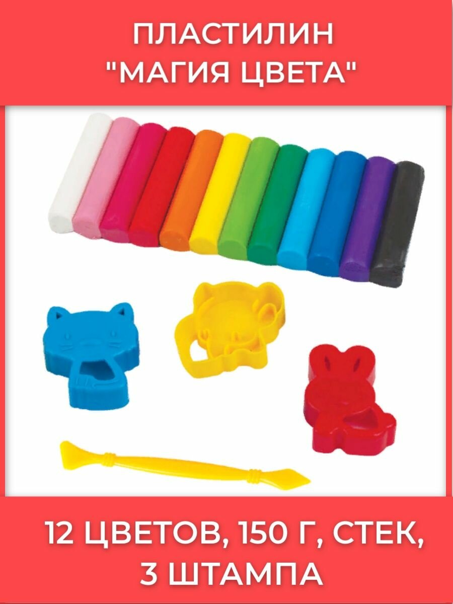 | Комплектация | Пластилин 12 брусков по 12 г; 3 штампа; Стек |